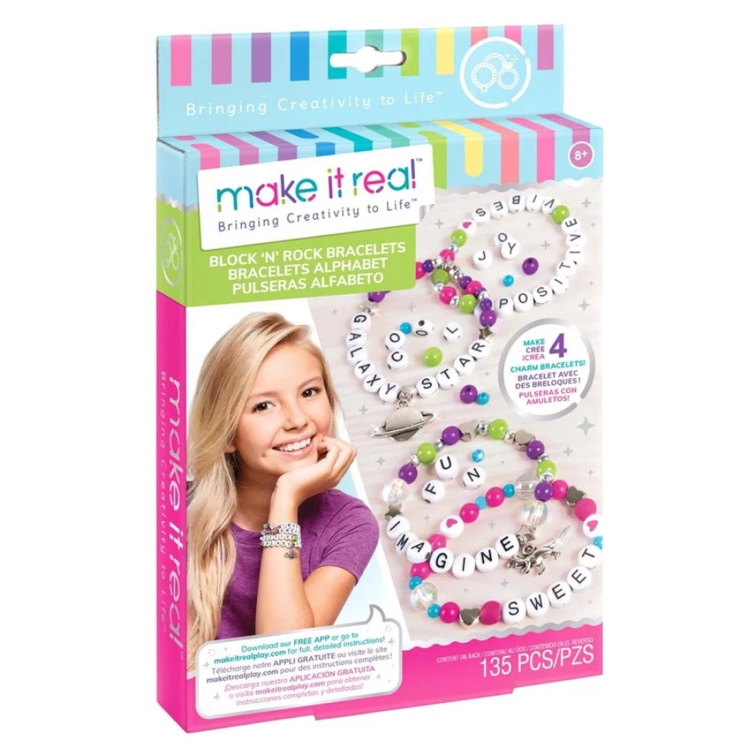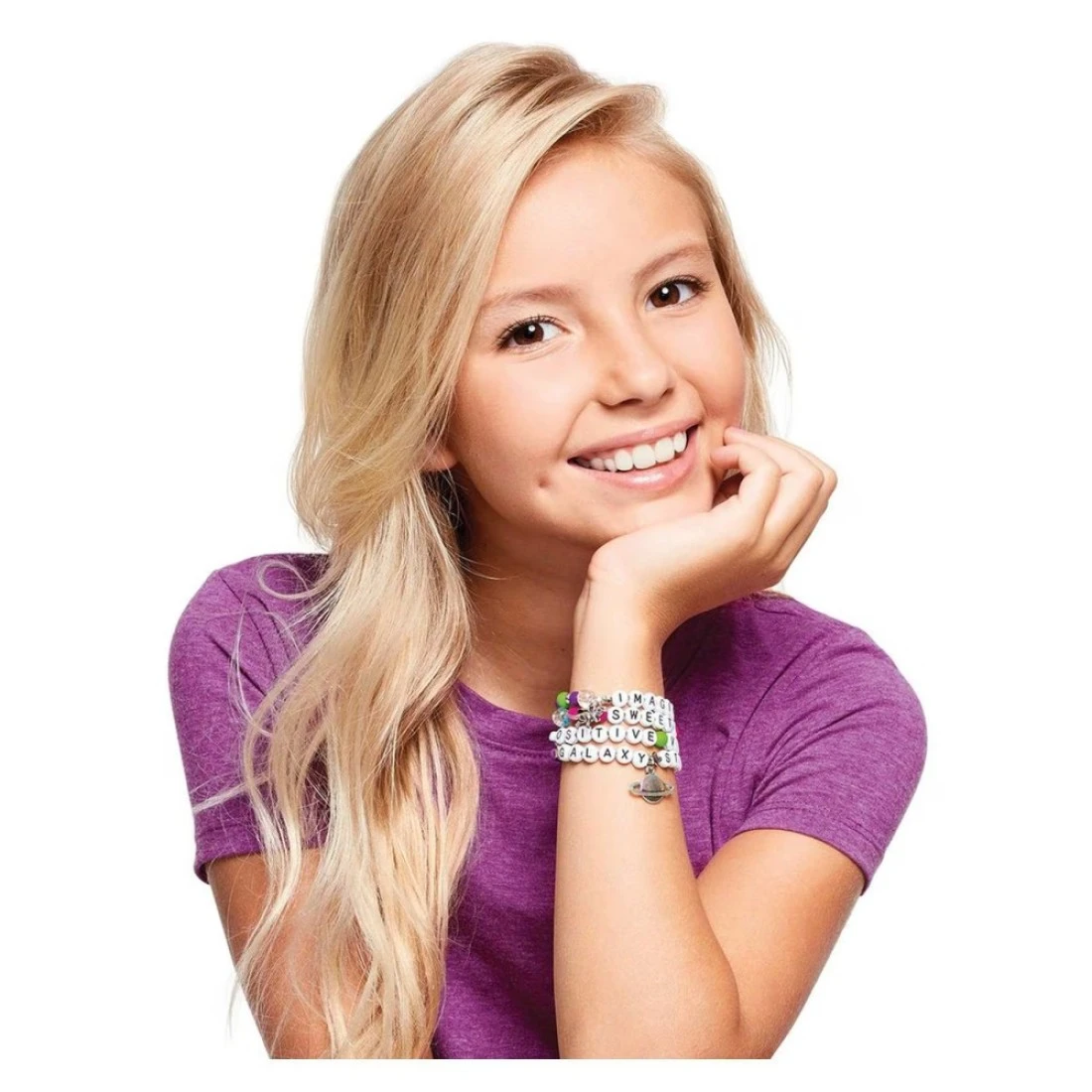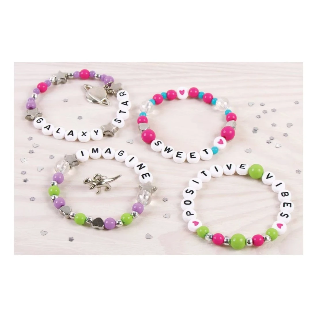 - Make four totally cool bracelets that say anything you want using this kit's alphabet letter beads, stylish beads and pretty charms