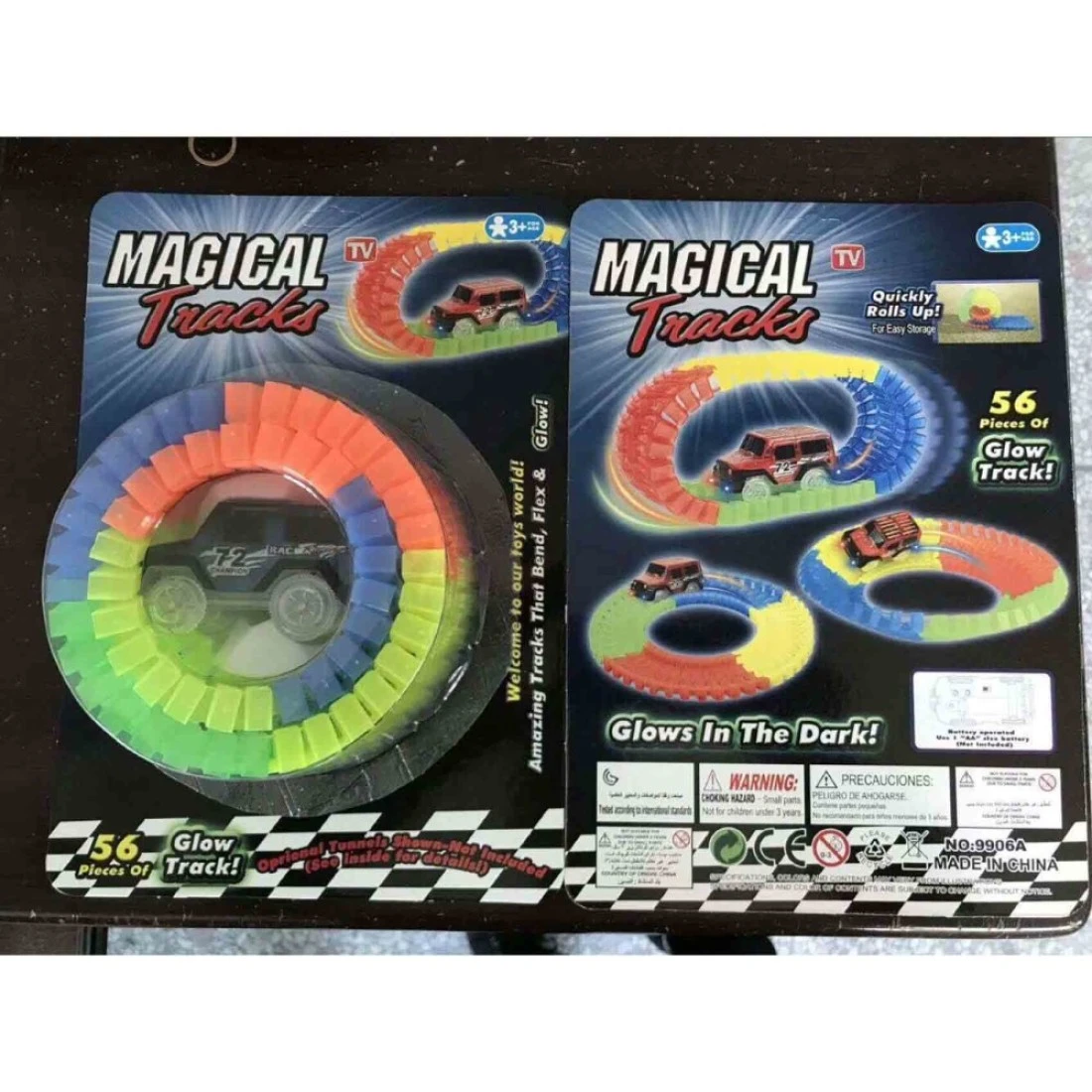 - Neon-coloured tracks glow in the dark