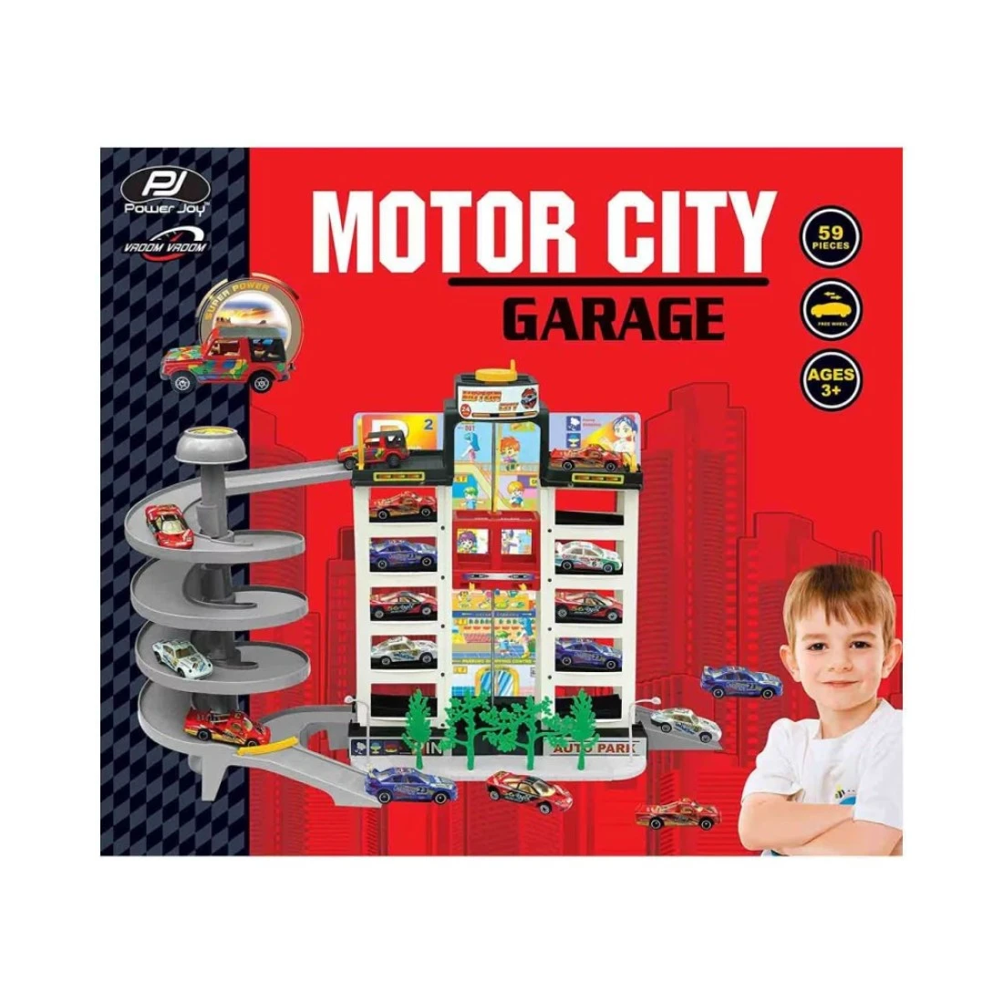 Power Joy Vroom Vroom Motor City Garage with 4 Cars Multicolour