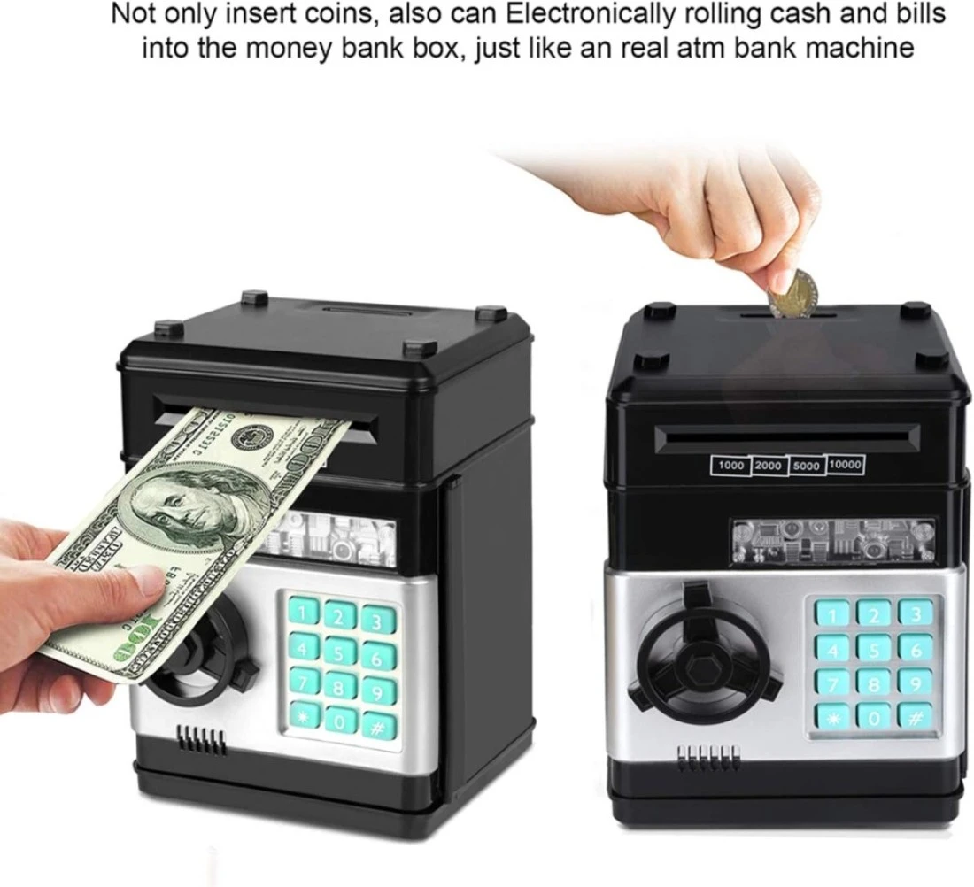 Improve the Child's Property safety Consciousness: It can be used to store toys, jewelry, baseball cards, etc. insert coins into the top of the money bank and you insert bills into the side, just use the safe as a piggy bank.