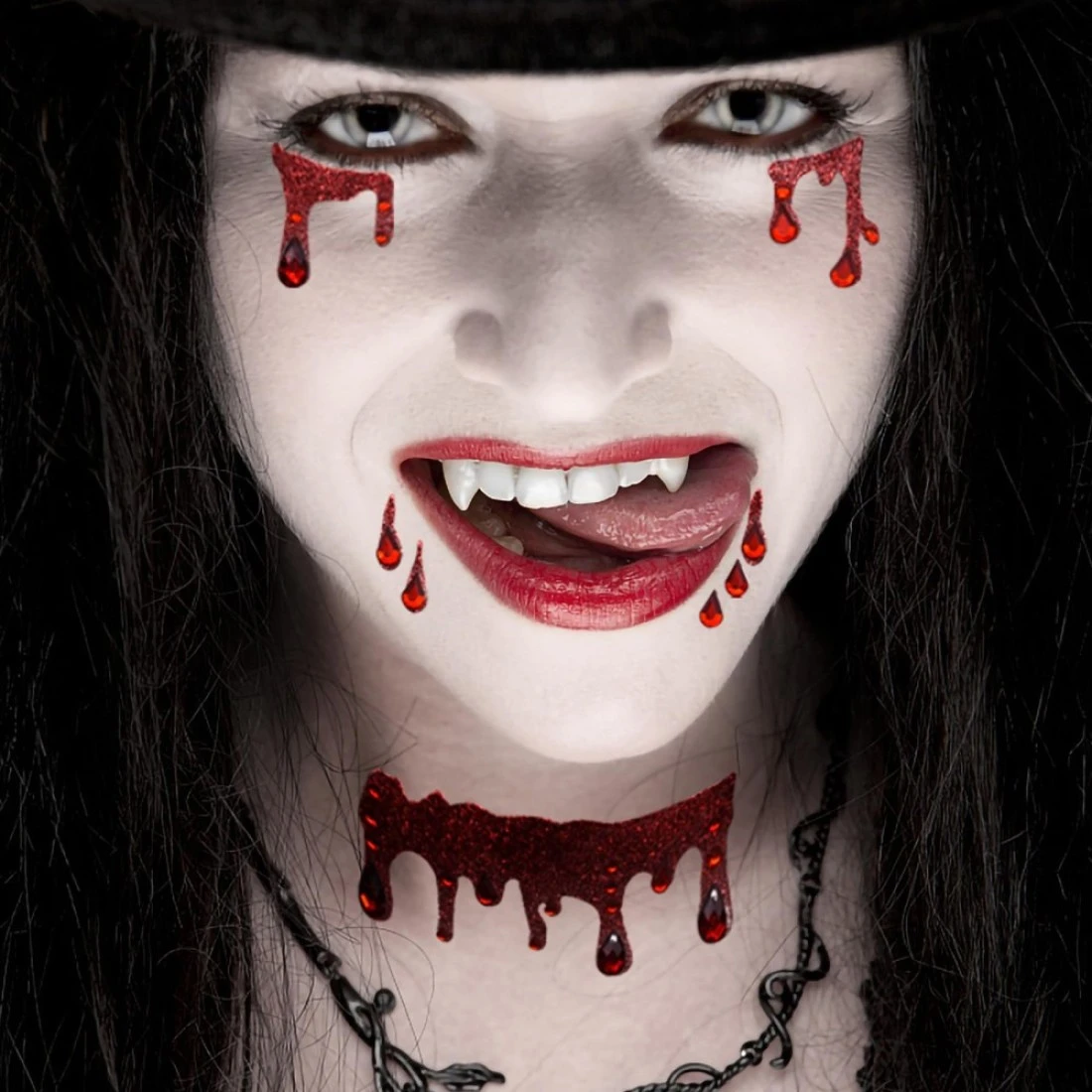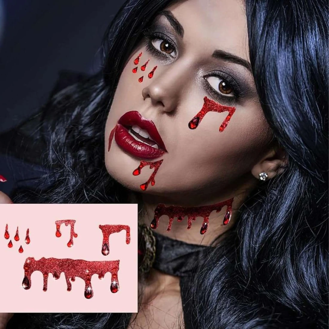 Halloween Cospaly Face Jewels Vampire Blood Costume Festival Face Gems Stick on Rhinestone Tattoo Stickers Pasties Self Adhesive Temporary Tattoos Fashion Jewelry for Party Vampire