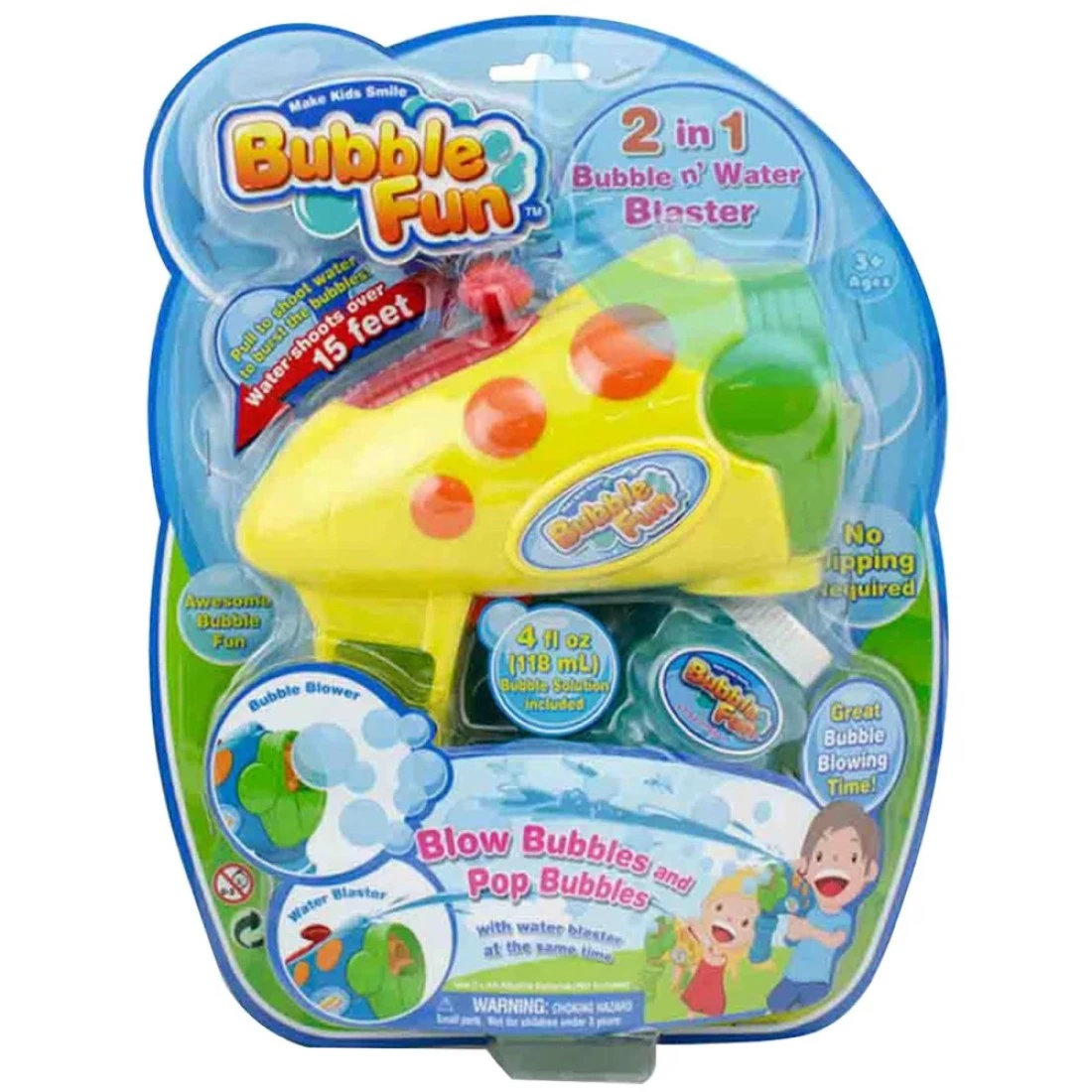 Bubble Fun 2 in 1 Bubble n Water Blaster blows bubbles and shoots water... The bubbles can be blown then popped by the blaster. Great outdoor fun to be had, water can be squirted over 15 feet!