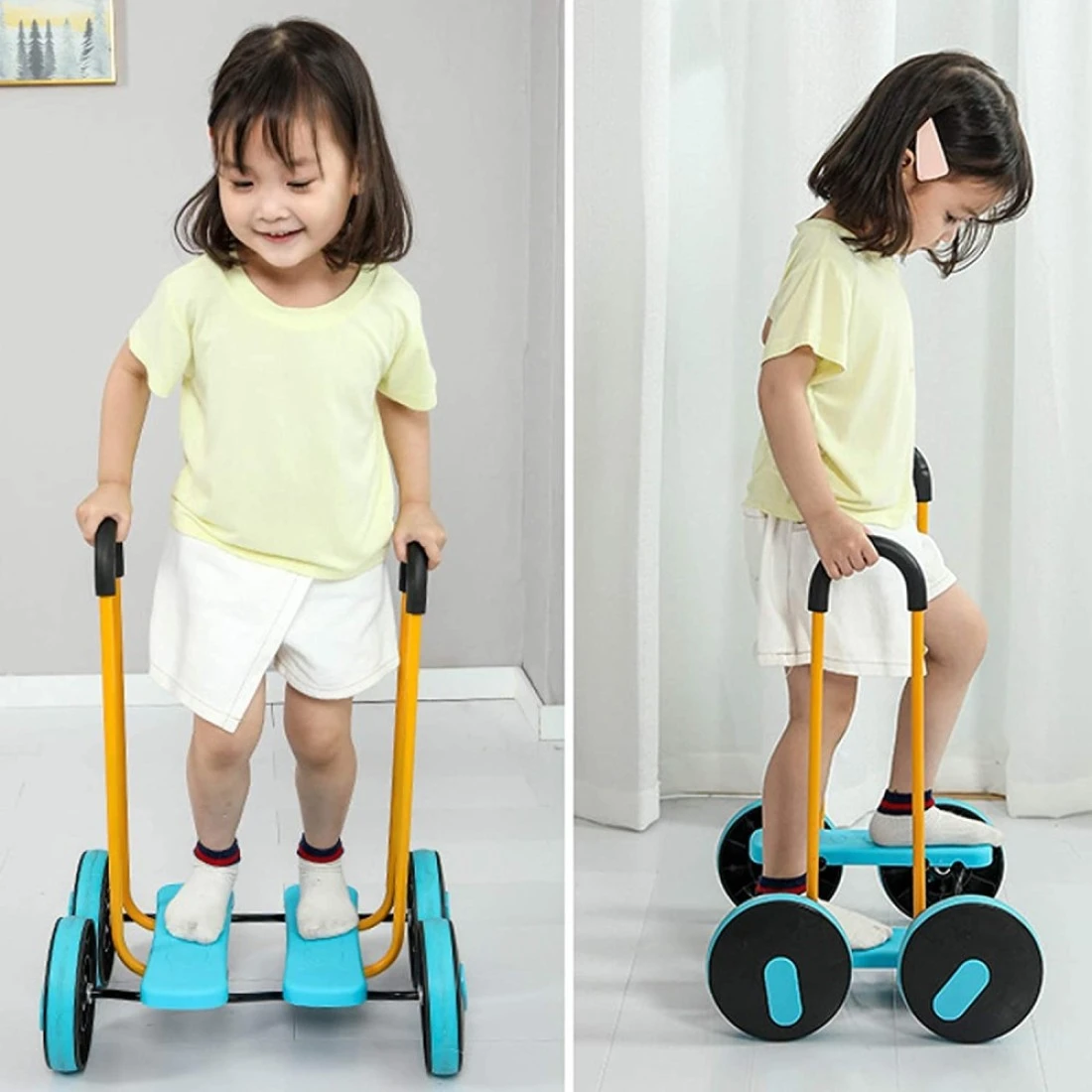 * The children stand on the pedals with their feet, and need to grasp the rhythm when stepping on the two feet with the grip, In this process, the children's vestibular balance ability is trained.