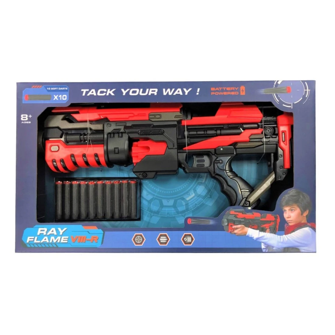 Feng Jia Battery Operated Ray Flame VIII-R Machine Gun with 10 Soft Darts