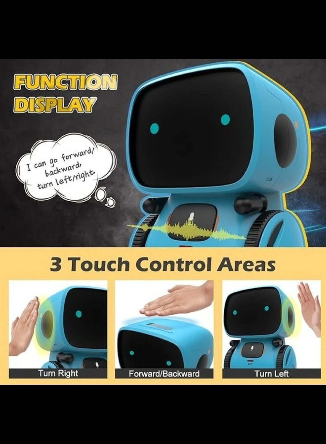 • Touch Sensor: The robot toy is equipped with touch sensors, allowing kids to interact with it through physical contact, enhancing the overall engagement and play experience.