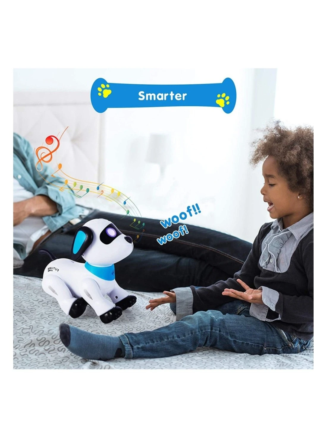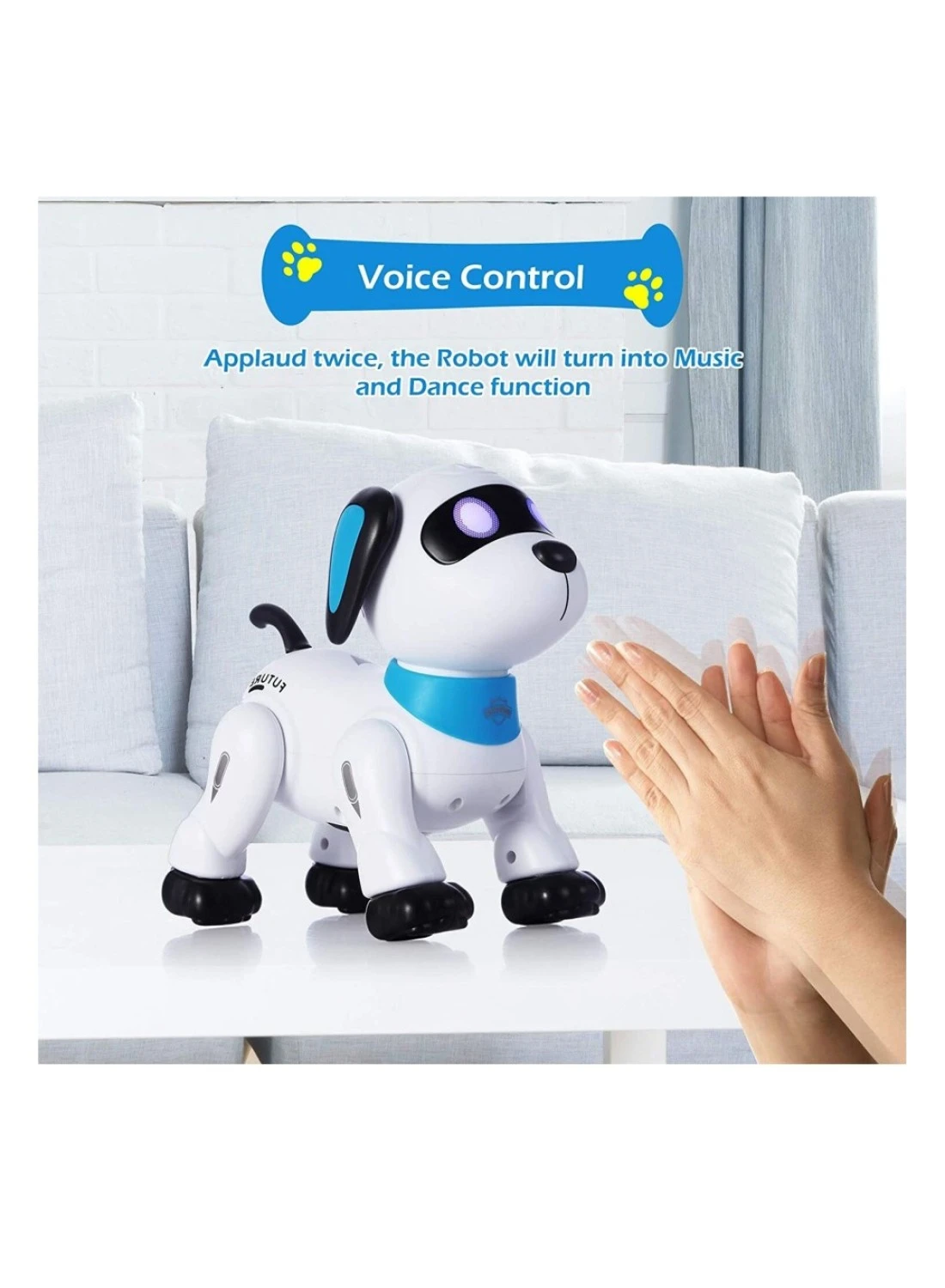 [Remote and Voice (Applaud) Control Robot Dog】You can play the dog with two modes. 1,Infrared remote control with control range 33ft. 2,Voice control(Applaud twice). Through voice control, the robot dog can dancing with 3 different musics. Excellent toy robots for kids.