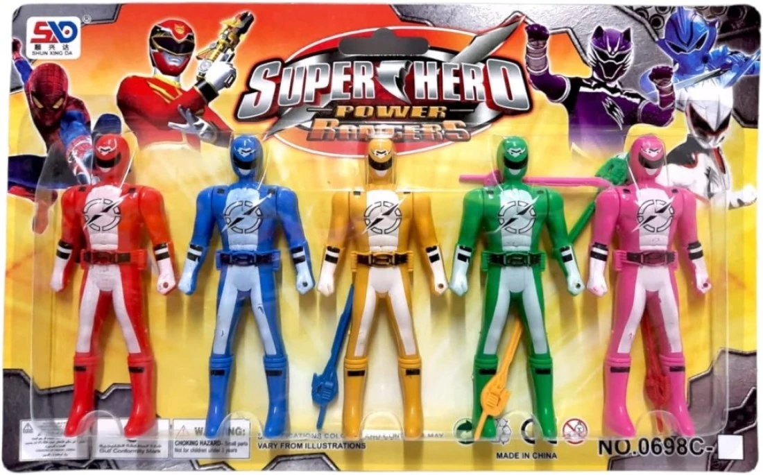 5-Pieces Set of Super Hero Power Rangers Toy Multipack 4.5-Inch Action Figure Toys with Weapon Accessories (5 Colors)