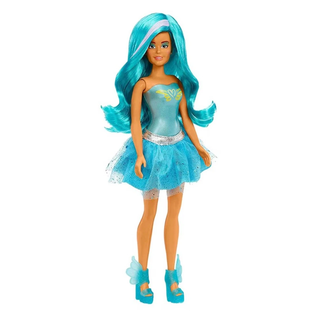 - DreamElla's sparkly teal multi-layered skirt matches her wig and boots