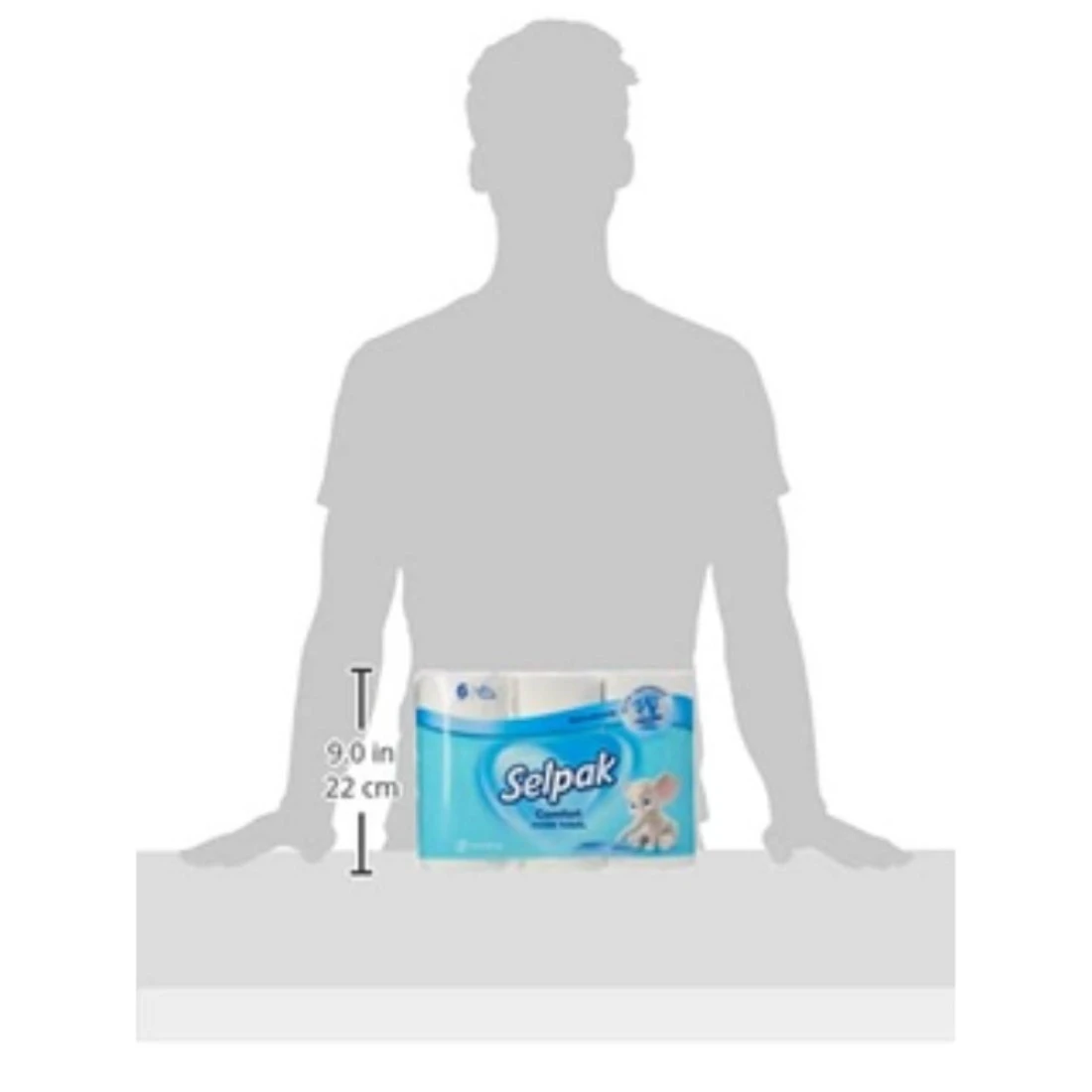 The Selpak Comfort 2 Ply Kitchen Towel is a versatile and durable option for all your kitchen needs. With 6 rolls of white paper towels, you'll have plenty on hand for any spills messes, or cleaning tasks. The 2-ply construction provides extra strength and absorbency while the white color adds a clean and fresh look to your kitchen. Whether you're wiping down countertops drying dishes or tackling tough messes the Selpak Comfort Kitchen Towel is up to the task.