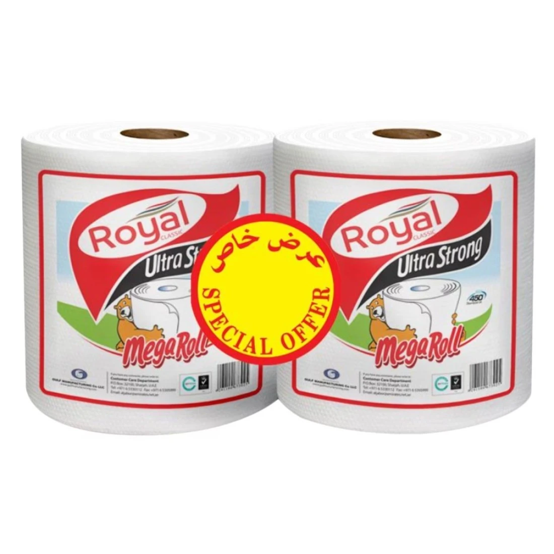 Royal Ultra Strong Mega Roll 350m 2 Rolls is a premium toilet paper option that offers exceptional strength and durability. With a length of 350 meters per roll, each roll provides long-lasting use reducing the need for frequent replacements. The ultra-strong construction ensures reliable performance making it ideal for households and commercial establishments. This toilet paper is soft gentle on the skin and highly absorbent providing a comfortable and hygienic experience. The pack includes two rolls offering convenience and value for money. Upgrade your bathroom experience with Royal Ultra Strong Mega Roll 350m 2 Rolls.