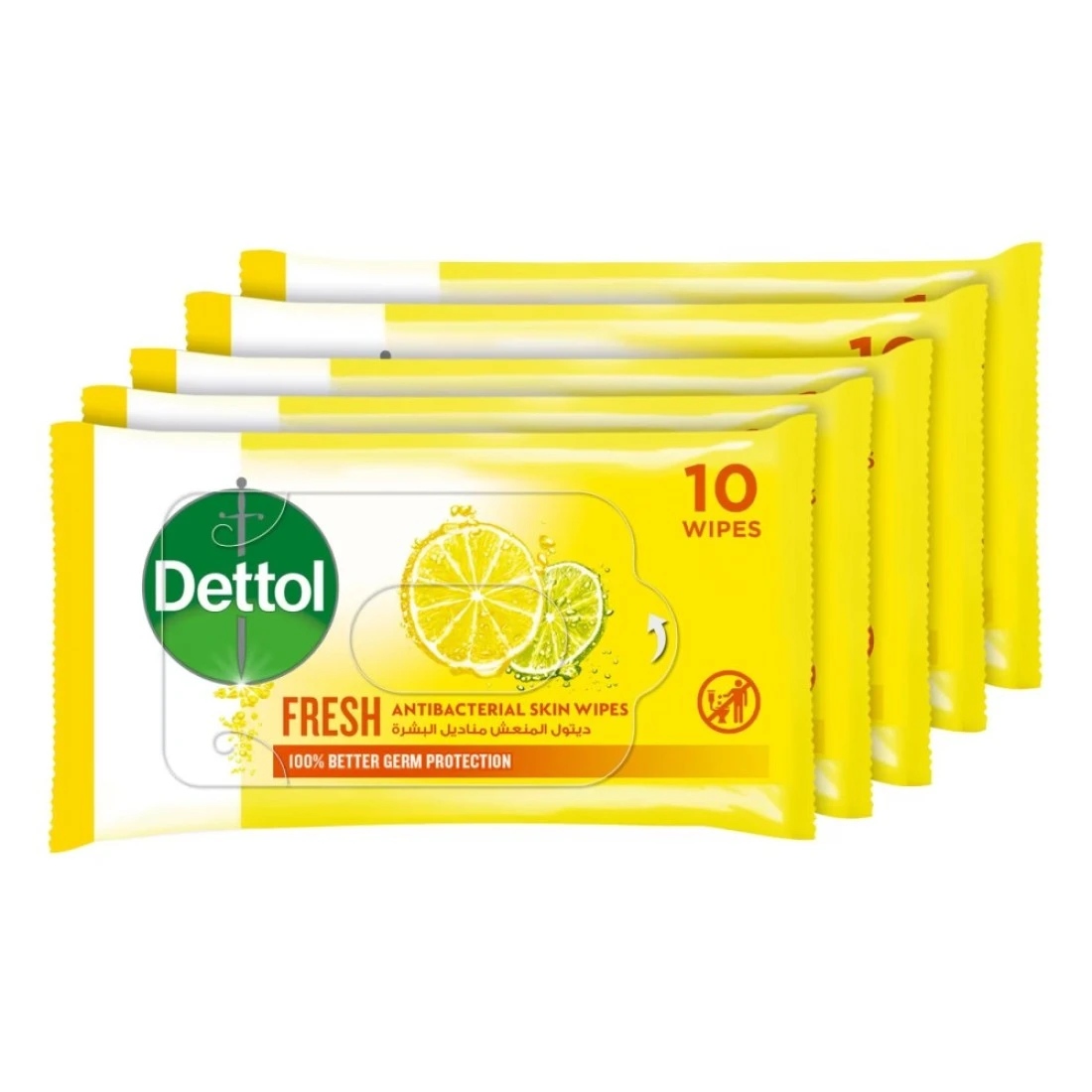 Dettol Anti Bacterial Fresh Skin 10 Wipes Pack of 5