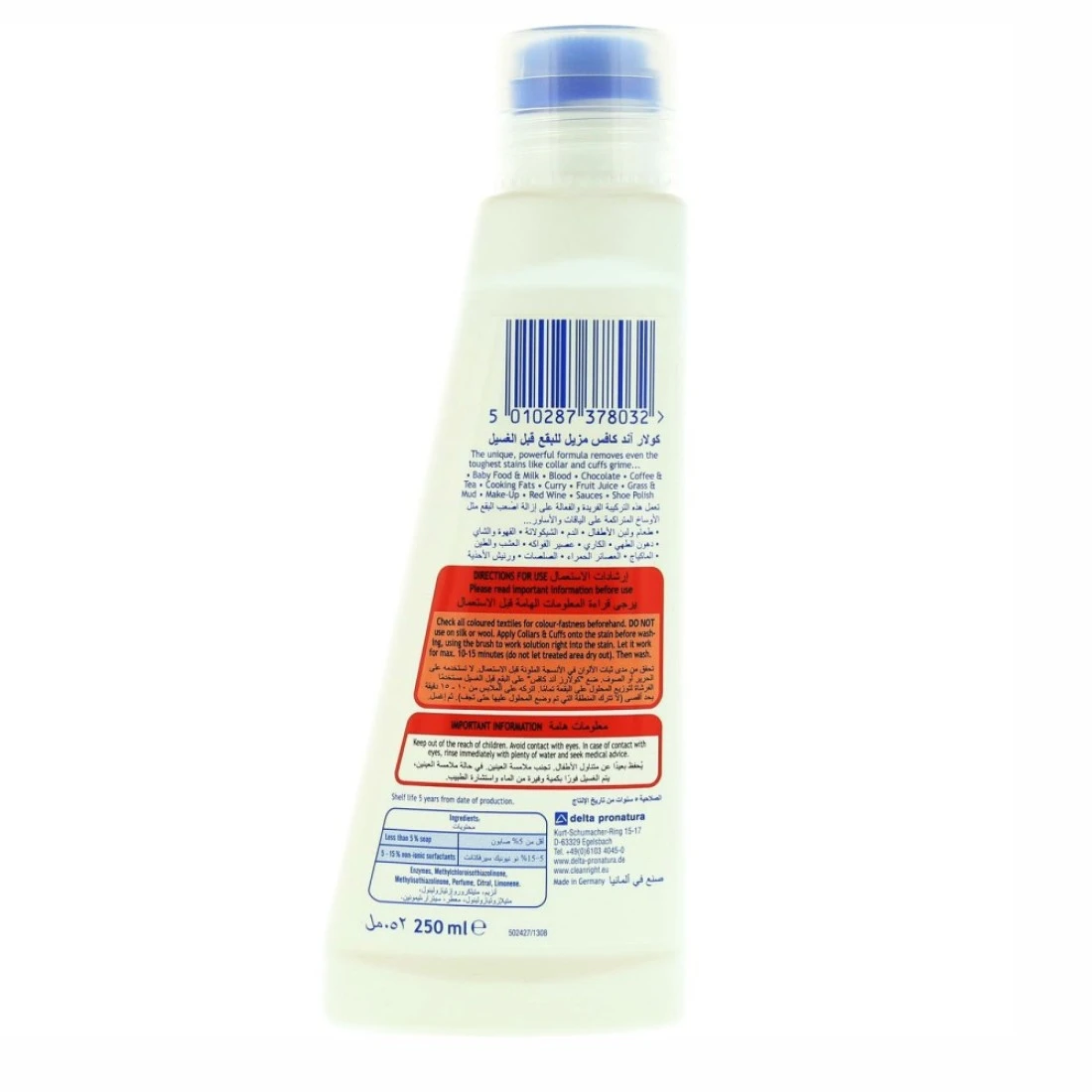 The Dr. Beckmann Pre Wash Stain Remover is a powerful solution to remove tough stains from your clothes. Whether it's grease, oil, or food stains, this stain remover can tackle them all. Simply apply a small amount to the stain, let it sit for a few minutes, and then wash as usual. Your clothes will come out looking clean and stain-free. One of the best things about the Dr. Wash Stain Remover is that it is suitable for use on a wide range of fabrics. Whether you have cotton, polyester, or even delicate silk, this stain remover is gentle enough to use without causing any damage. It is also safe to use on coloured fabrics, so you don't have to worry about the stain remover causing any discoloration. With its convenient 250ml size, the Dr. Wash Stain Remover is perfect for keeping in your laundry room or taking with you on the go. Its compact size makes it easy to store and its powerful formula means you only need a small amount to get rid of even the toughest stains. Say goodbye to stubborn stains and hello to fresh, clean clothes with the Dr. Wash Stain Remover.