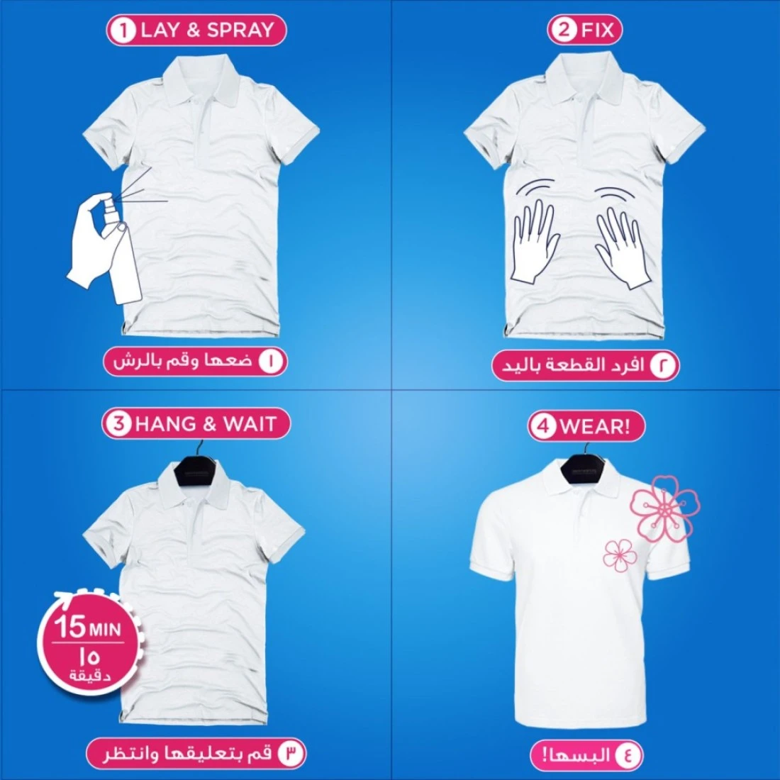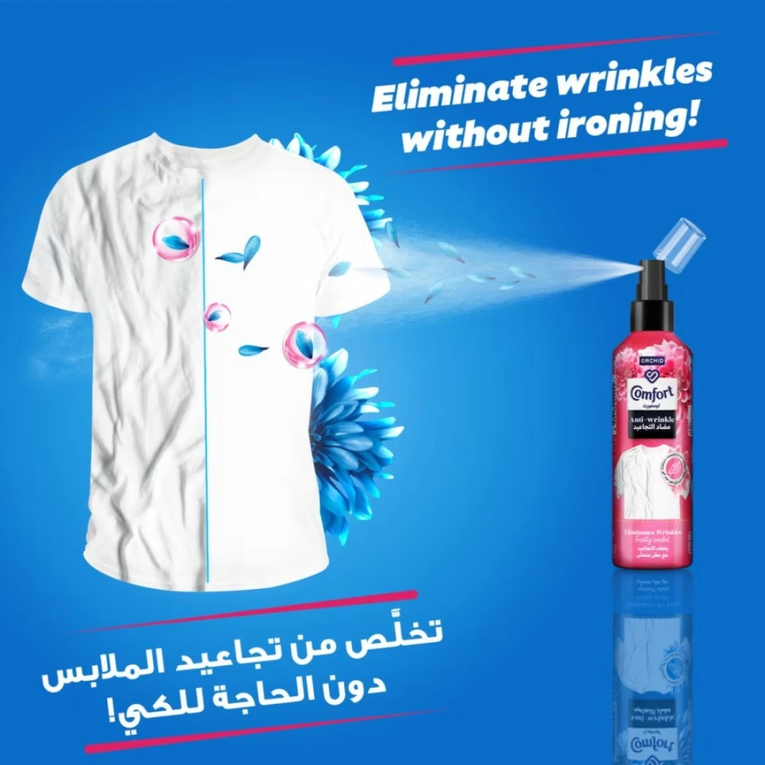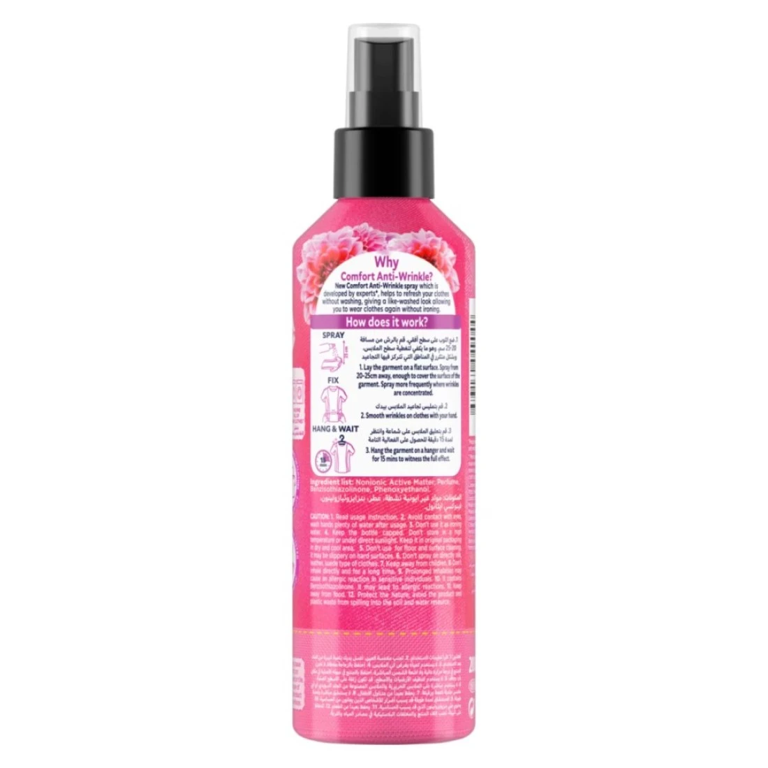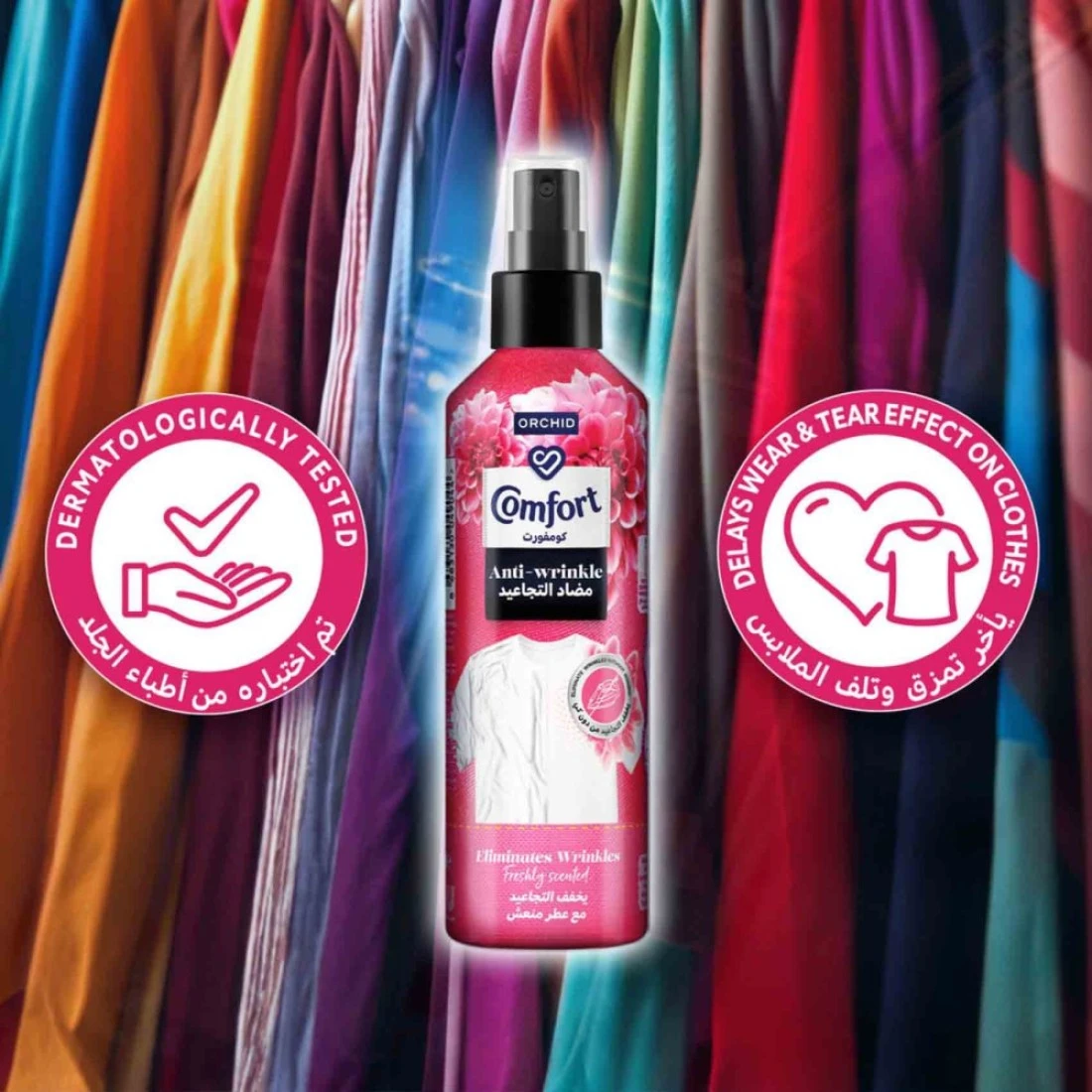- New Comfort Anti-Wrinkle spray which is developed by experts helps to refresh your clothes without washing giving a like-washed look and allowing you to wear clothes again without ironing