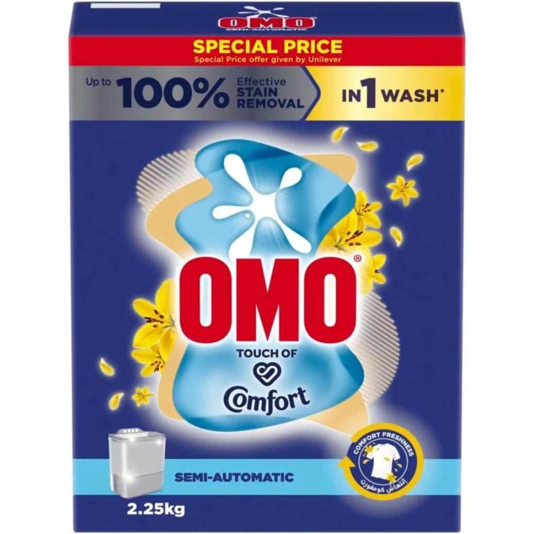 - EXPLORE THE FULL RANGE of OMO Powder Laundry detergent: OMO Touch of Comfort for a fresh fragrance, OMO Sensitive for delicate skin and OMO BLACK for Abayas and Black Fabrics.