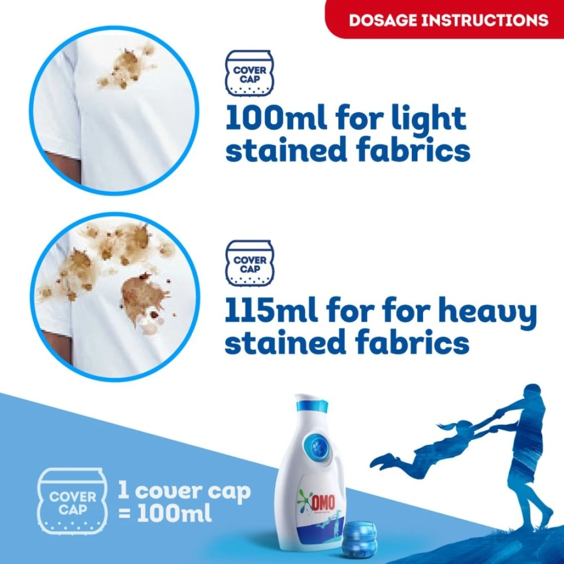- USAGE & DOSAGE: Use 100ml of OMO Liquid detergent for a semi-automatic machine & 75ml of the detergent for an automatic machine.