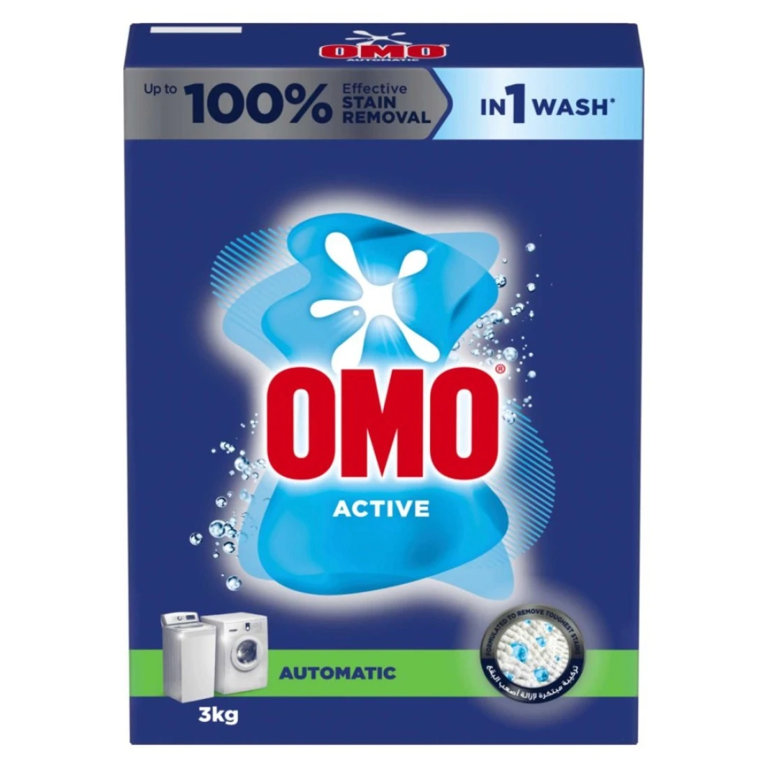 OMO Active Laundry Detergent Powder, now in a fresh new look, and a new advanced formula. OMO Active Powder provides up to 100% stain removal in just one wash*, formulated specifically to tackle the toughest stains. Its advanced new formula targets the root of the stain, dissolving rapidly and penetrating fabric deeply to lift stains completely away. \\Enjoy a fresh and lasting fragrance with OMO Active Powder detergent, leaving your clothes smelling clean for longer For anti-bacterial action wash clothes at least 45 minutes. For best laundry results use OMO & Comfort. Always check the articles care label and rollow the washing instrutions.\Explore the full range of OMO Powder Laundry Detergents, including OMO Touch of Comfort for a fresh fragrance, OMO Sensitive for delicate skin, and OMO Black for Abayas and black fabrics. With OMO Active Laundry Detergent Powder, you get a powerful clean, lasting freshness, and a variety of options to suit your laundry needs.\\Safety warning; Do not swallow. Rinse and dry hands thoroughly after use, Keep out of reach of children. Avoid contact with eyes. In case of contact with eyes, rinse immediately with water. People with sensitive or damaged skin should avoid prolonged contact with the wash solution, if the contact occurred please contact a doctor immediately. The use of gloves is recommended to prevent any unwanted problems.\\\*Based on stain removal test results on fatty, enzymatic, bleachable and particulate stain