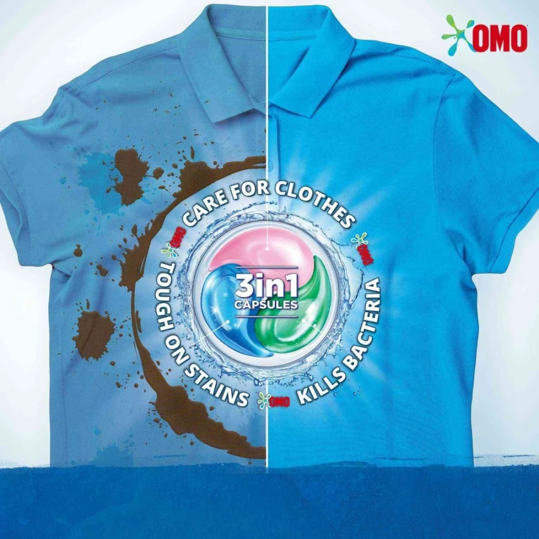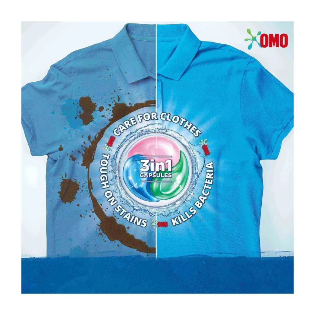 - Omo 3-in-1 Laundry Capsules remove tough stains and eliminate bacteria for a clean, fresh-smelling wash.