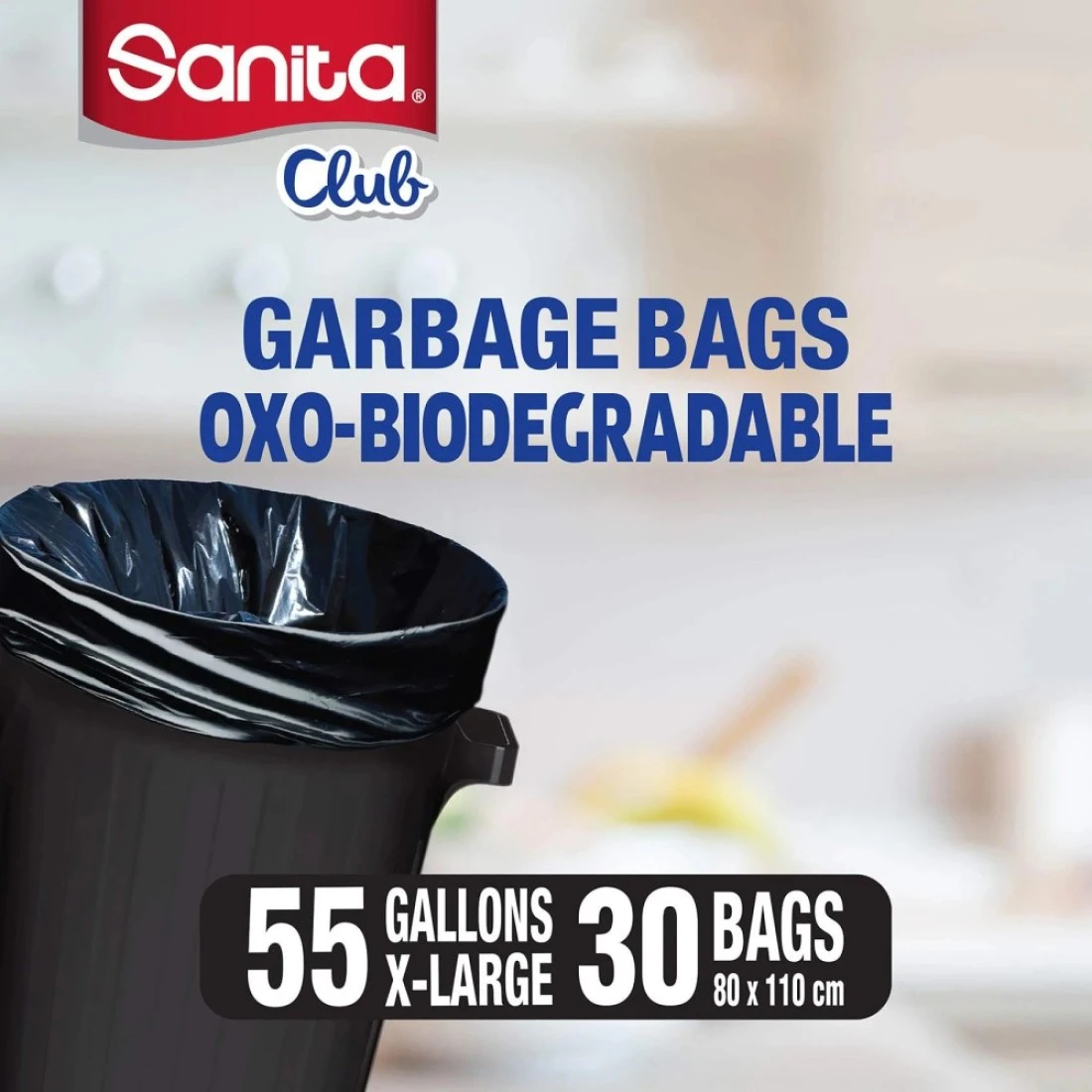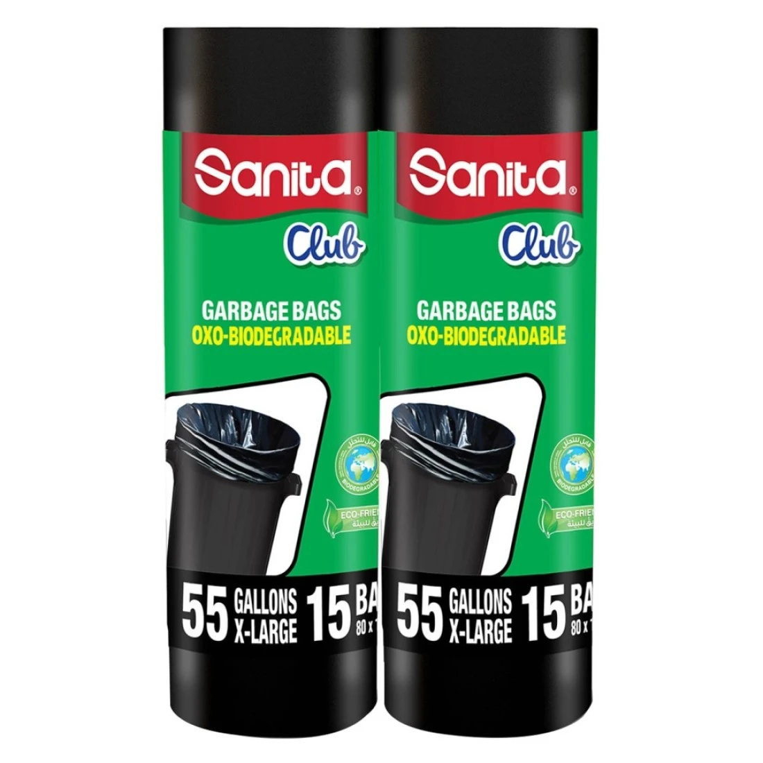 Sanita Club 55 Gallon Oxo-Biodegradable XL Black 2 Garbage Bags