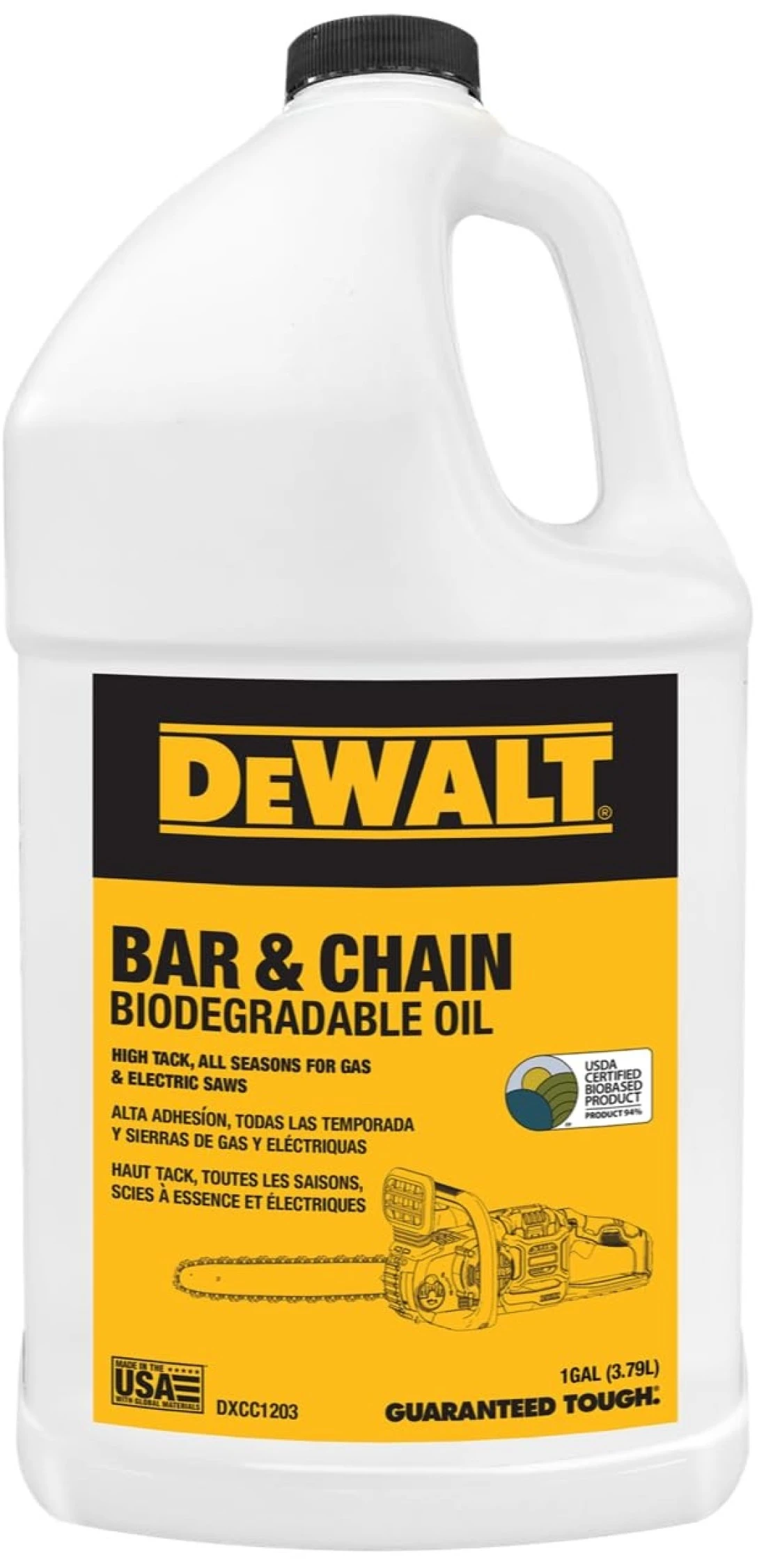 DEWALT Biodegradable Chainsaw Oil High Performance Non Toxic Professional Lubricant Green EcoFriendly Ultraclean All Season Bar Chain Lube 1 GALLON