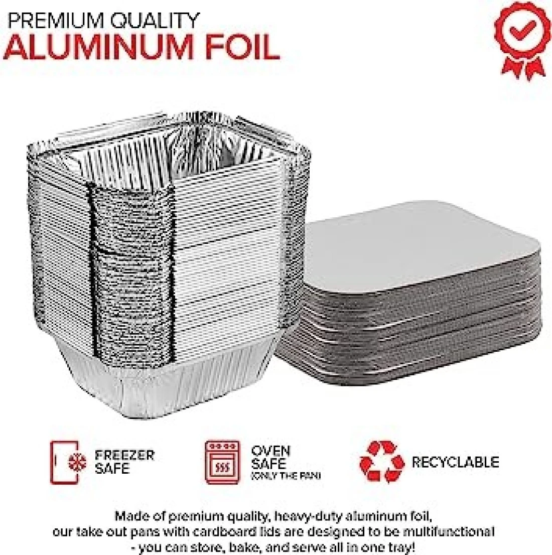 VSELL24 ALUMINIUM CONTAINERS EXCELLENT QUALITY: Made of premium quality, heavy-duty aluminum foil, our take-out pans with cardboard lids are designed to be multifunctional - you can store, bake, and serve all in one tray