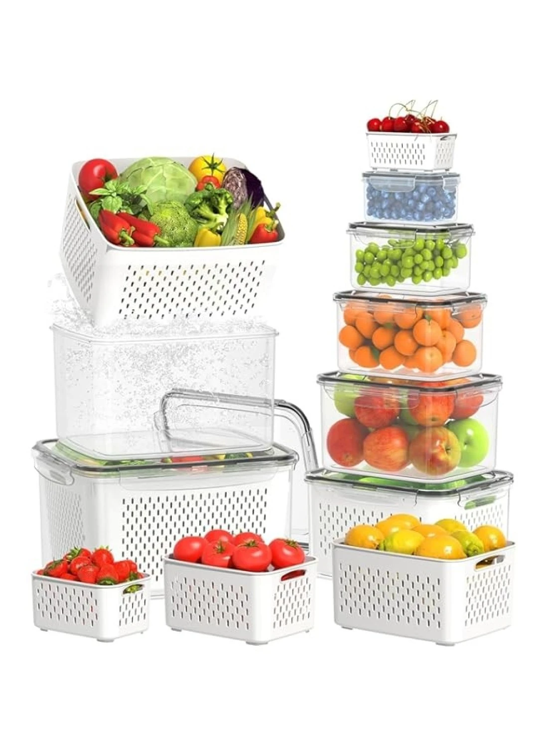 Raxoom 12 Piece Plastic Fridge Organizers and Storage Drain Food Container For Fruits Vehetables Berry Lettuce Salad Leak-proof Airtight Food Storage Containers with Lids with Colanders, BPA-Free