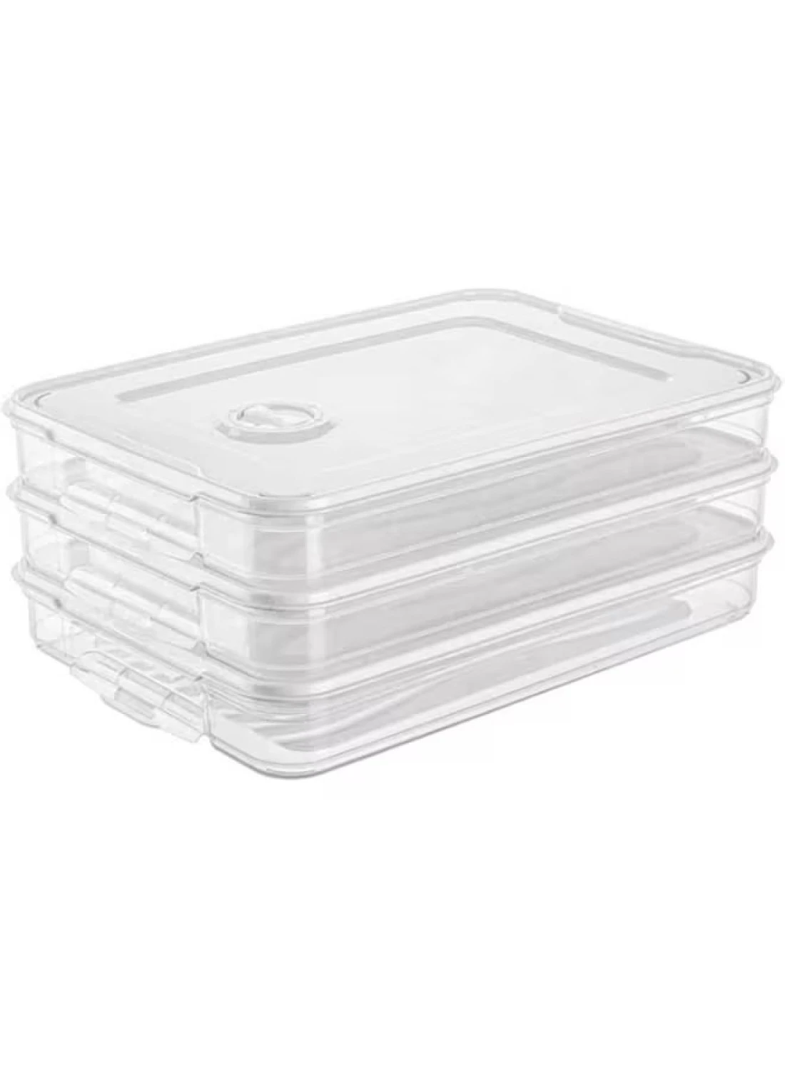 3pcs Plastic Food Storage boxes, Stackable Fridge Freezer Crisper Storage Box, Stack Food Container Tray Organizer 3 Layer Refrigerator Box, Airtight Container for Food, Transparent Slim Containers