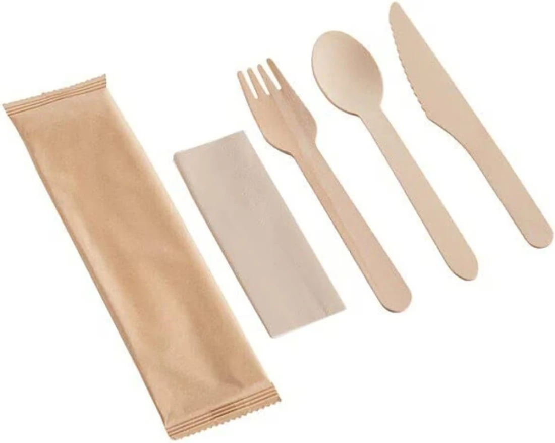 ✅ Complete Set with Napkin – Each set includes a sturdy wooden knife, fork, spoon, and a soft napkin for added convenience.