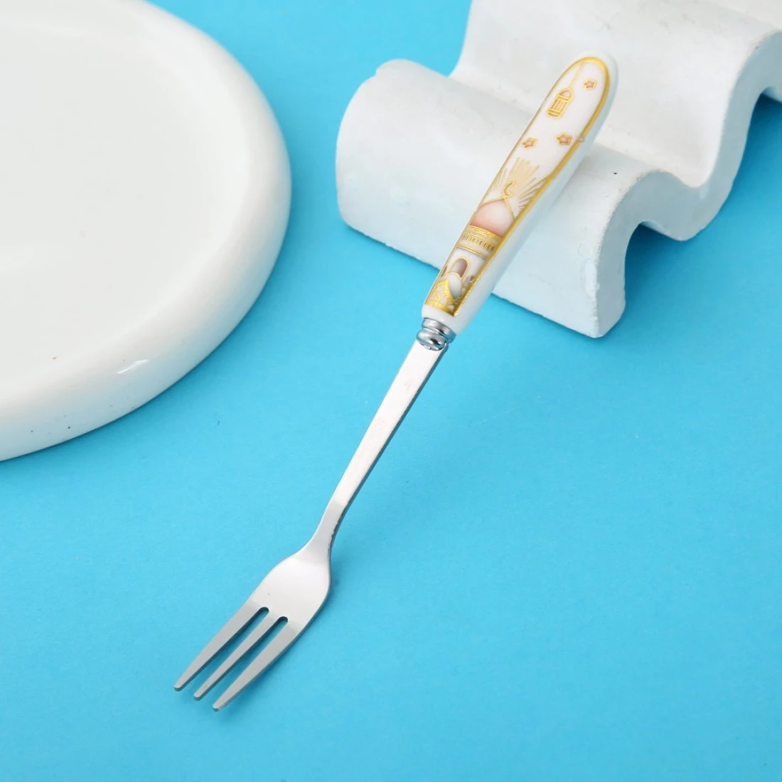 Lihan 6Pcs Ramadan Designed Fork (S), Gold Plasted Design Plating Stainless Steel 15.5X1.5X15.5Cm Spoons For Cake Spoon, Dessert Spoons, Easy To Clean, Dishwasher Safe