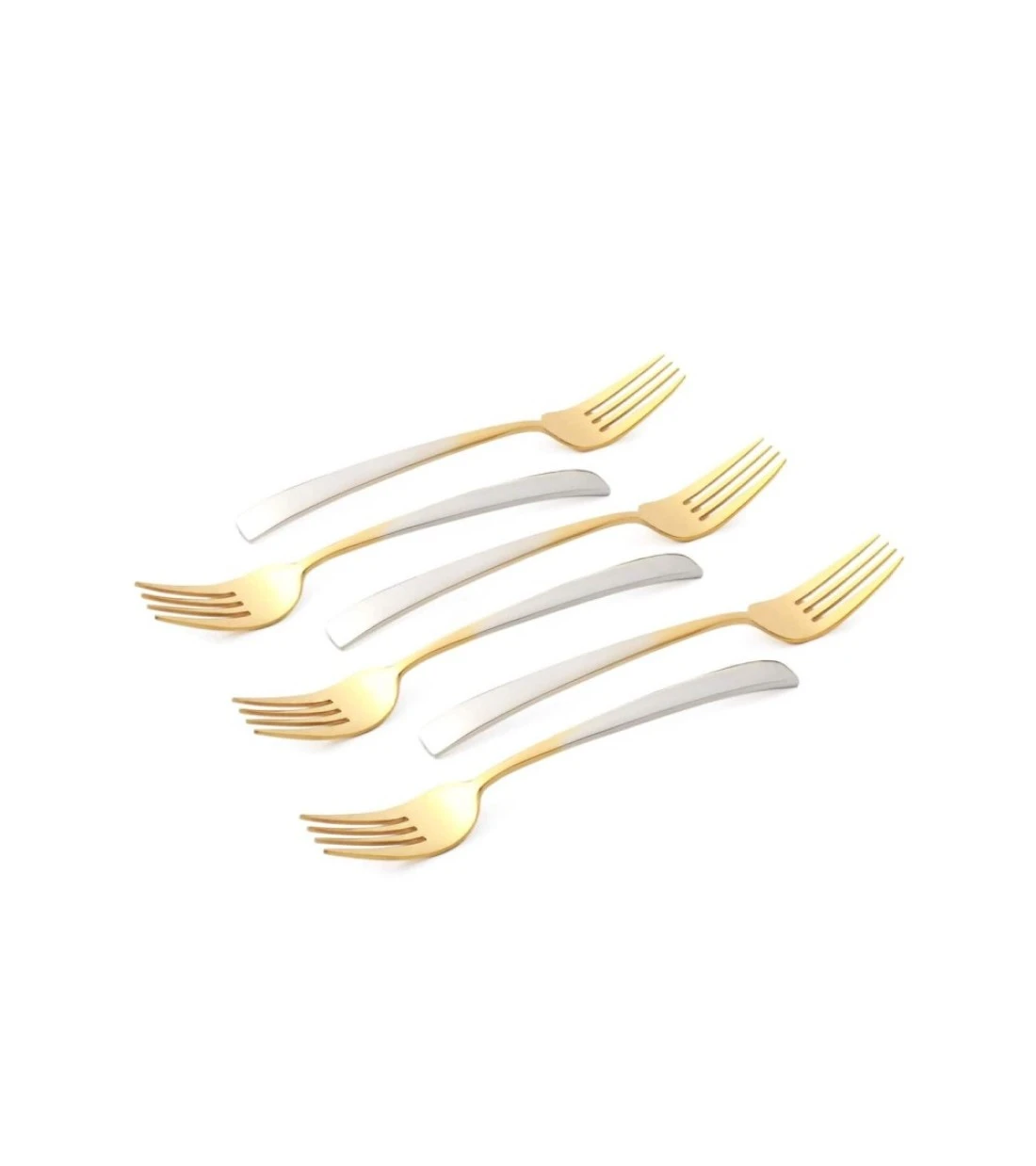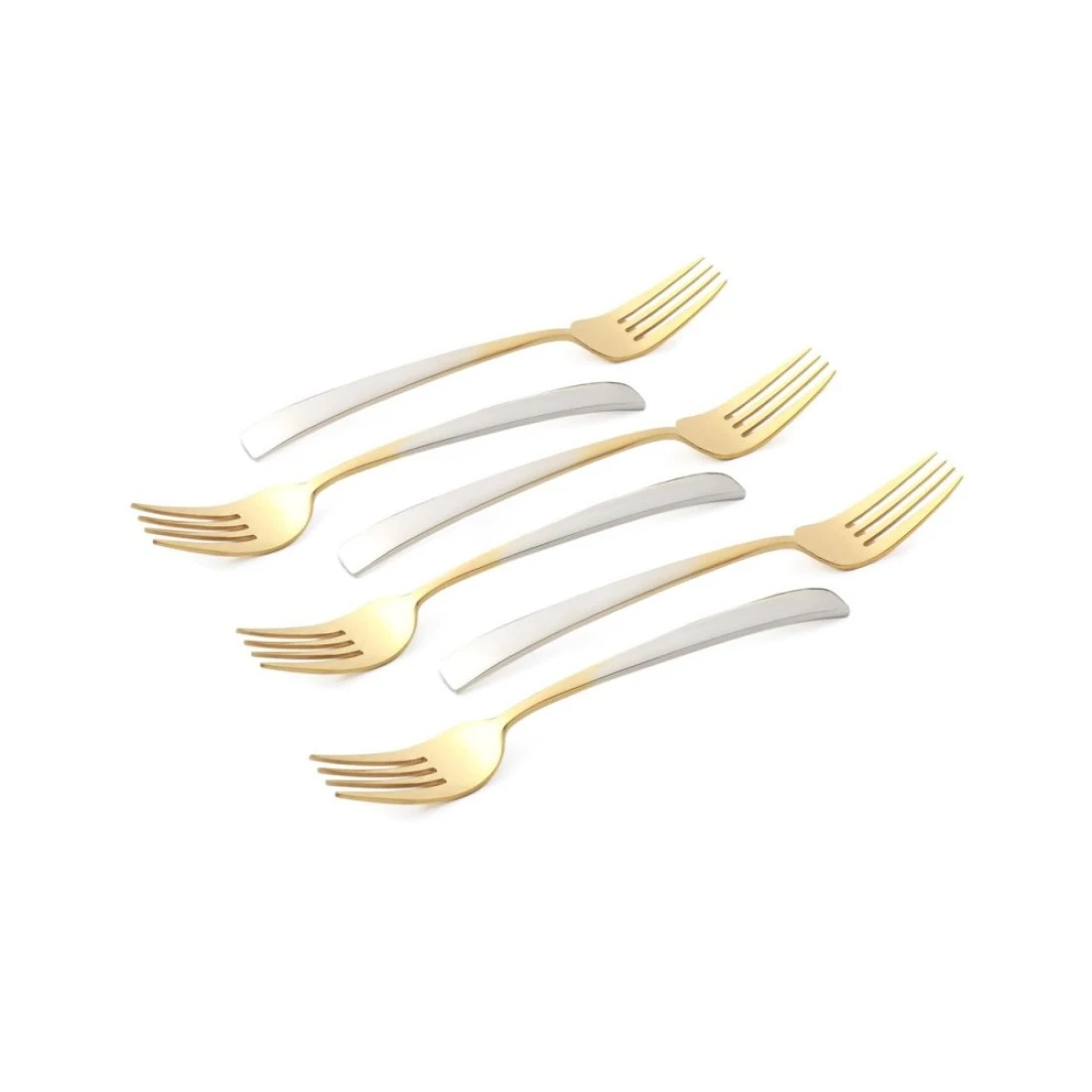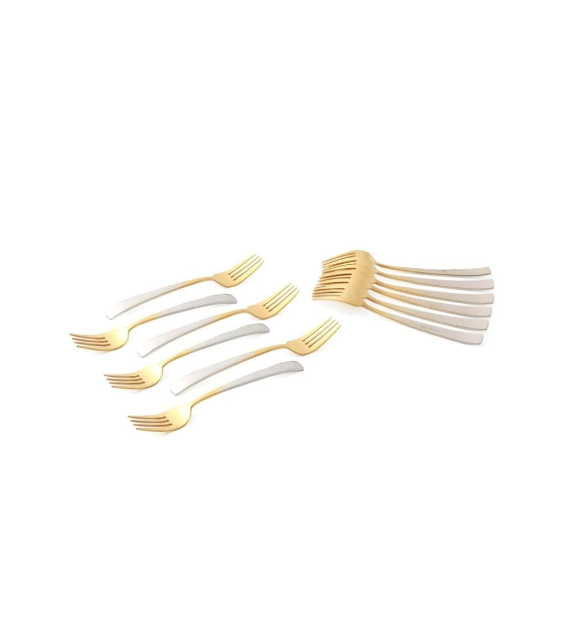 LIFE SMILE - 12pcs Cutlery Set, 18/10 Stainless Steel, Flatware Set, 12pcs Dinner Fork, Gold Gradient, for Home Kitchen, Mirror Polished