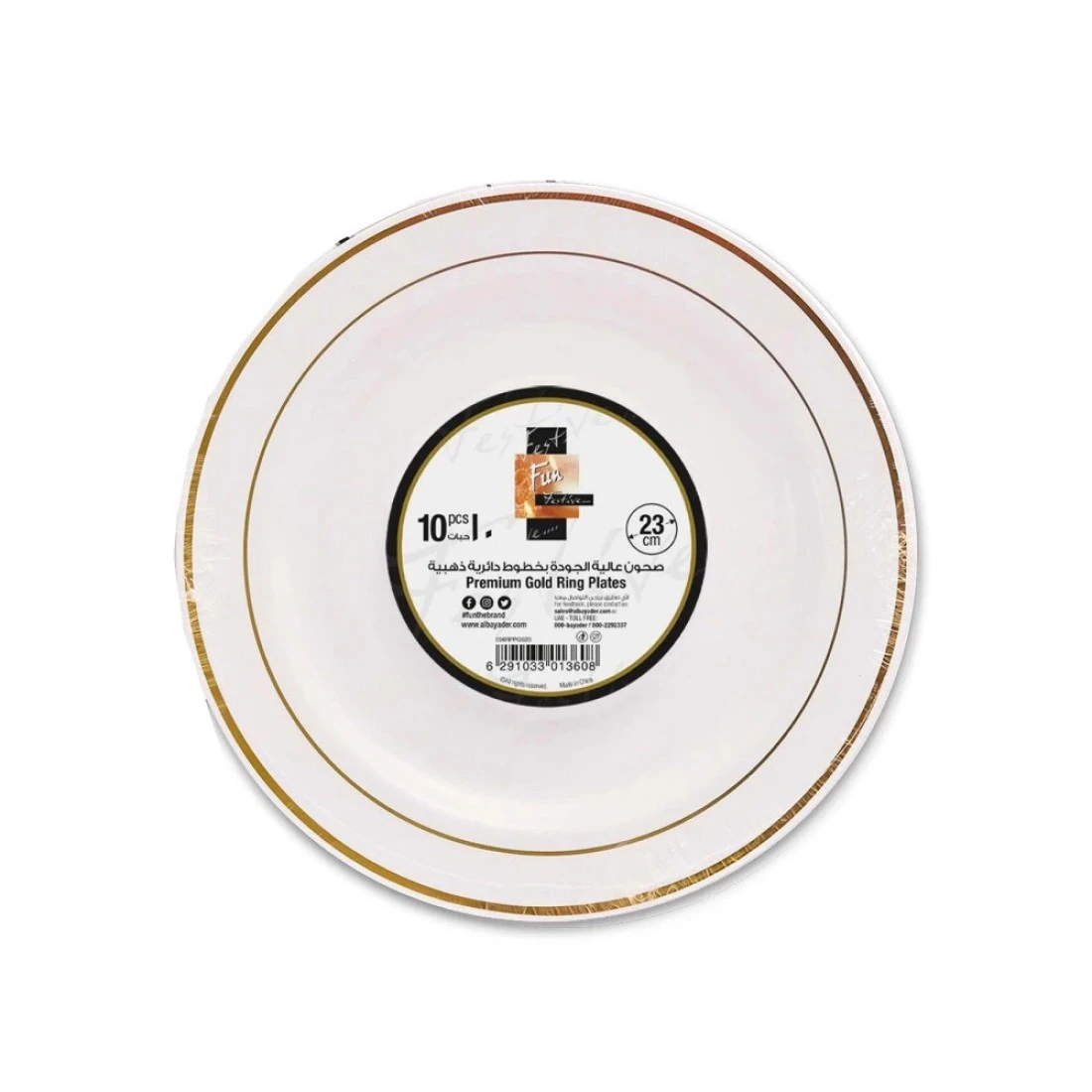 Fun Premium Ring Plate 23cm White And Gold 10 PCS