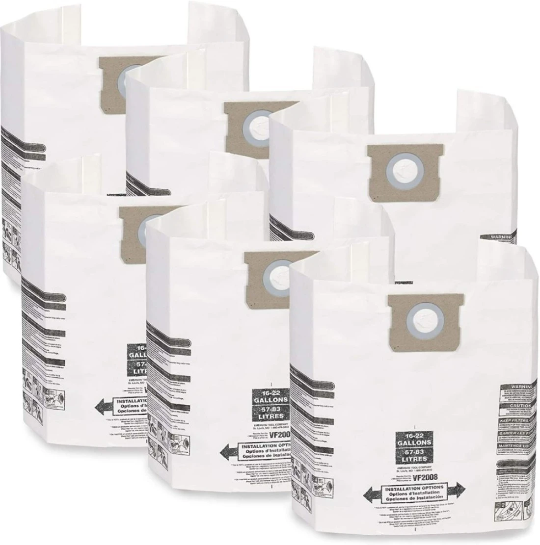 WORKSHOP WetDry Vacs MultiFit Wet Dry Vacuum Bags VF2008TP General Dust Filter Bag Bag Filter For Most 16 gallon To 22 gallon ShopVac Genie Shop Vacuum Cleaners 3 Count Pack of 2