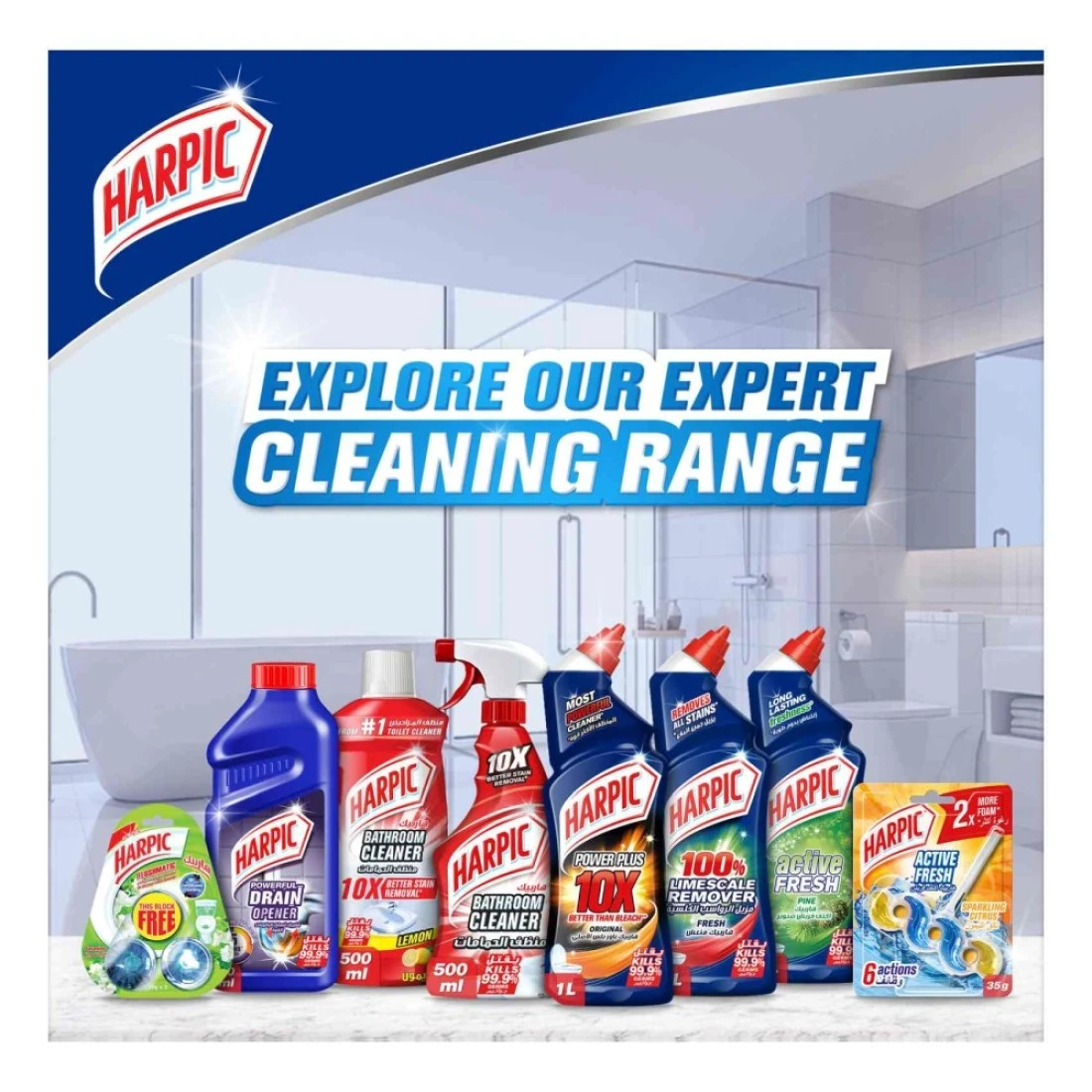 - Also explore Harpic's products range like - Bathroom Cleaner Drain Opener Flush Matic In-Cistern Toiler Cleaner Toilet Blocks and Toilet Cleaner