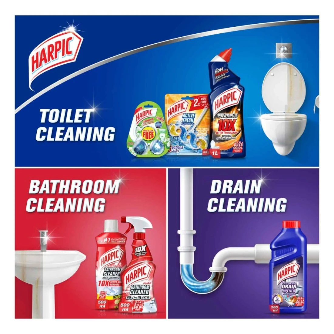 - Also explore Harpic's products range like - Bathroom Cleaner Drain Opener Flushmatic In-Cistern Toiler Cleaner Toilet Blocks and Toilet Cleaners