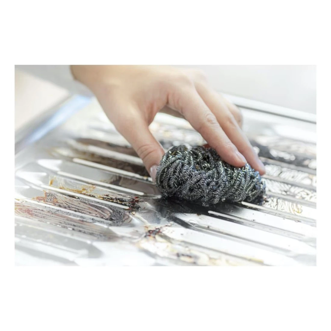 The Scotch-Brite Stainless Steel Metal Spiral Scrubber Scouring Pad is a must-have for any kitchen. It is perfect for cleaning tough stains and grime from stainless steel pots, pans, and utensils. The spiral design allows for easy and effective scrubbing, while the stainless steel material ensures durability and long-lasting use. With a pack of 6, you will always have a spare pad on hand for your cleaning needs. The scouring pads are easy to use and maintain. Simply rinse them after each use and they will be ready for the next cleaning task. Whether you are a professional chef or a home cook, these scouring pads are a great addition to your kitchen arsenal. Not only are these scouring pads effective, but they are also safe to use. The stainless steel material is non-abrasive, so it won't scratch or damage your stainless steel surfaces. You can confidently scrub away tough stains without worrying about causing any harm. Say goodbye to stubborn stains and hello to a sparkling clean kitchen with the Scotch-Brite Stainless Steel Metal Spiral Scrubber Scouring Pad.