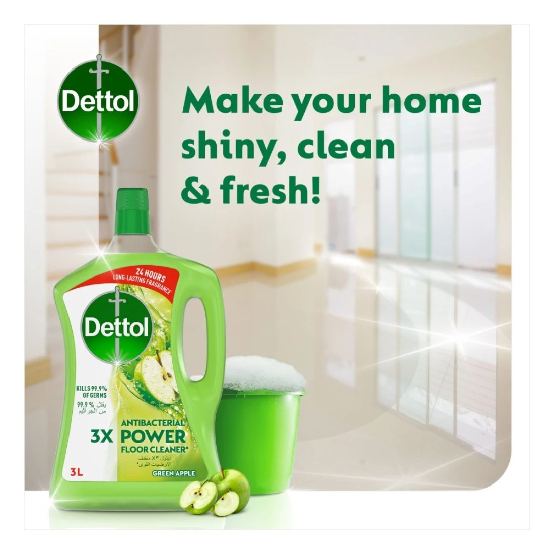 Dettol 3x Power Antibacterial Floor Cleaner Green Apple 3L