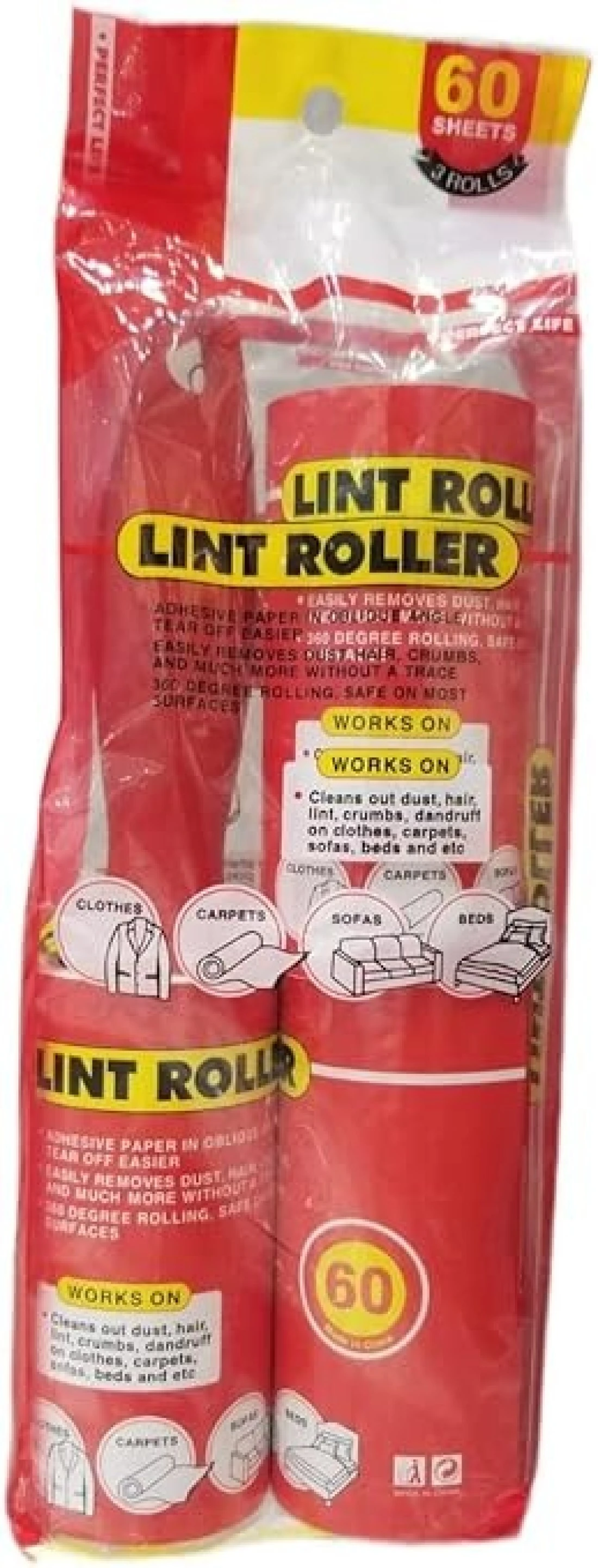 Lint Roller Clothes Brush, Pet Hair Remover, Value Pack/3 Rollers, RED,