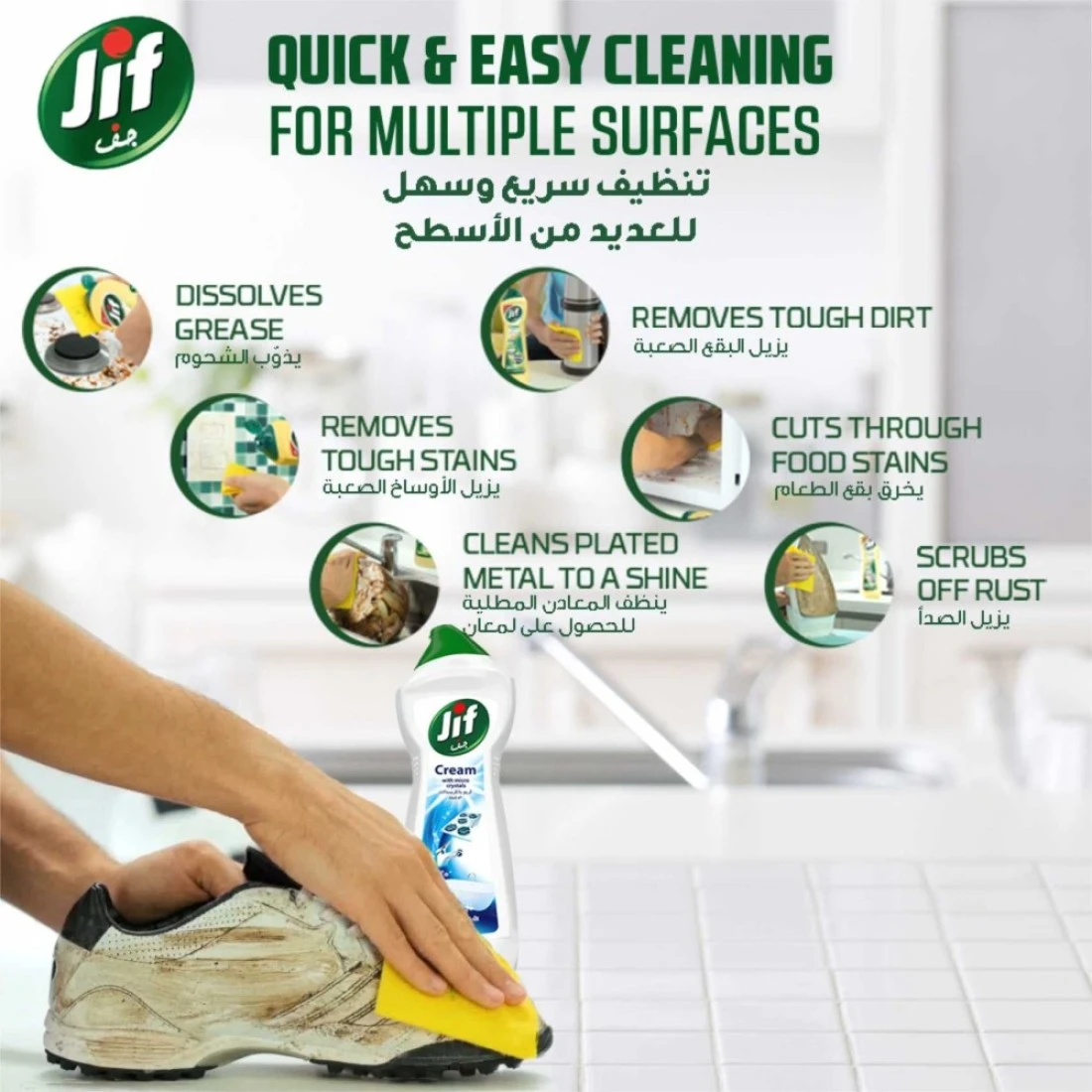 - Jif Cream Cleaner Original ensures 100% dirt and stain removal