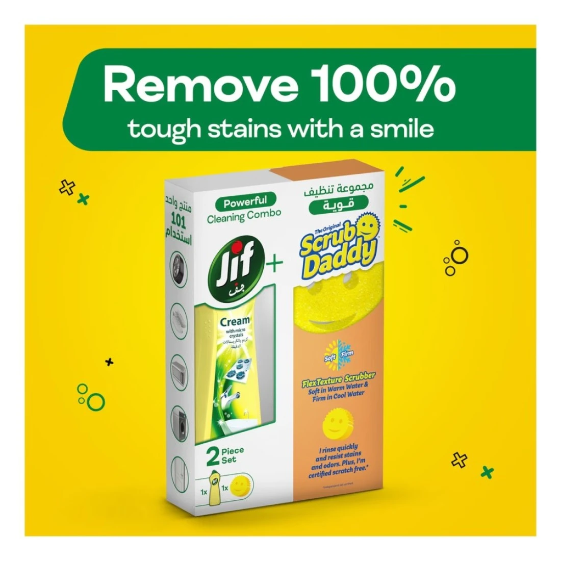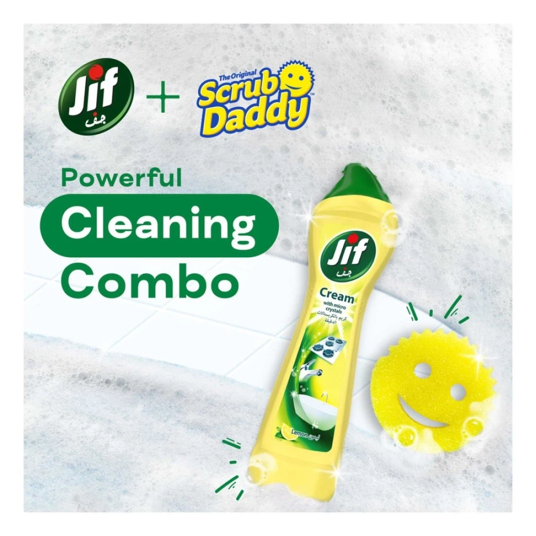 - Guarantee 100% tough stain removal using the powerful combo of Jif Lemon Cream Cleaner and Scrub Daddy Sponge