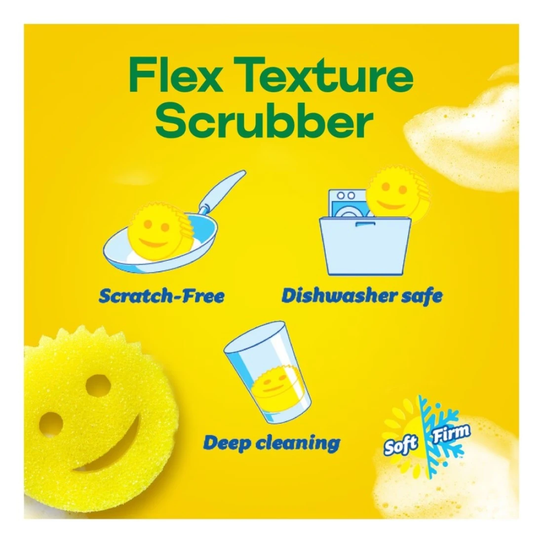 - Made with FlexTexture technology, the sponge is soft in warm water and firm in cold water for enhanced cleaning & scrubbing power