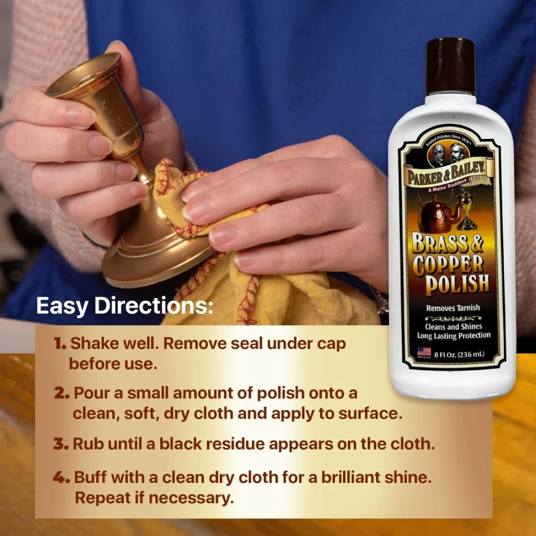 PARKER BAILEY Brass and Copper Polish Brass Polish Cleaner Copper Cleaner and Polish Tarnish Remover Metal Polish Cream for Polishing Antique Decor Pans Furniture 8 Oz Bottle