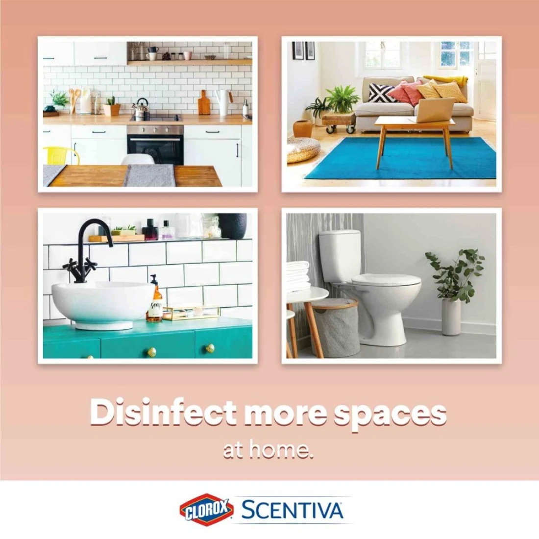 - Indulge your home with Clorox Scentiva which combines the trusted cleaning and disinfection power of Clorox with extraordinary scents that transform your entire home