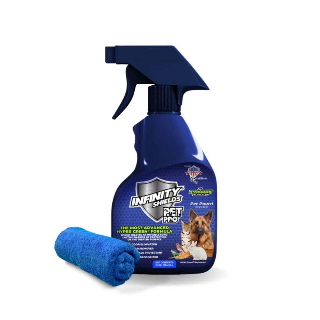 Infinity Shields Pet Pro Odor Stain Eliminator Prevents ReMarking Hyper Green LongLasting Formula 12 OZ Fresh Clean Scent