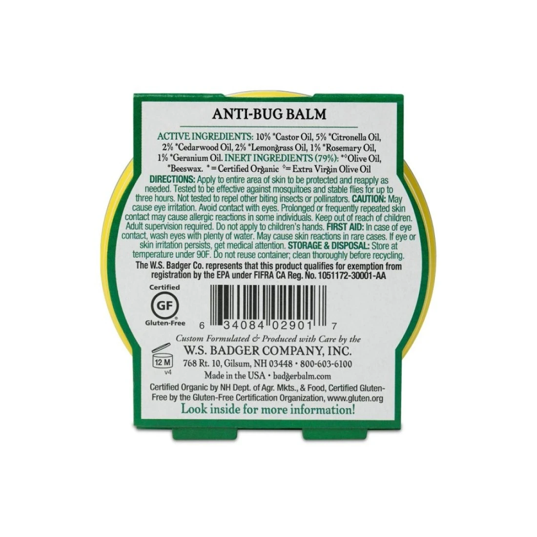 BadgerBug Repellent Organic DeetFree Mosquito Repellent with Citronella Lemongrass Easy to Use Travel Size Camping Essential Family Friendly Insect Repellent Balm 2 oz Tin 2 Pack