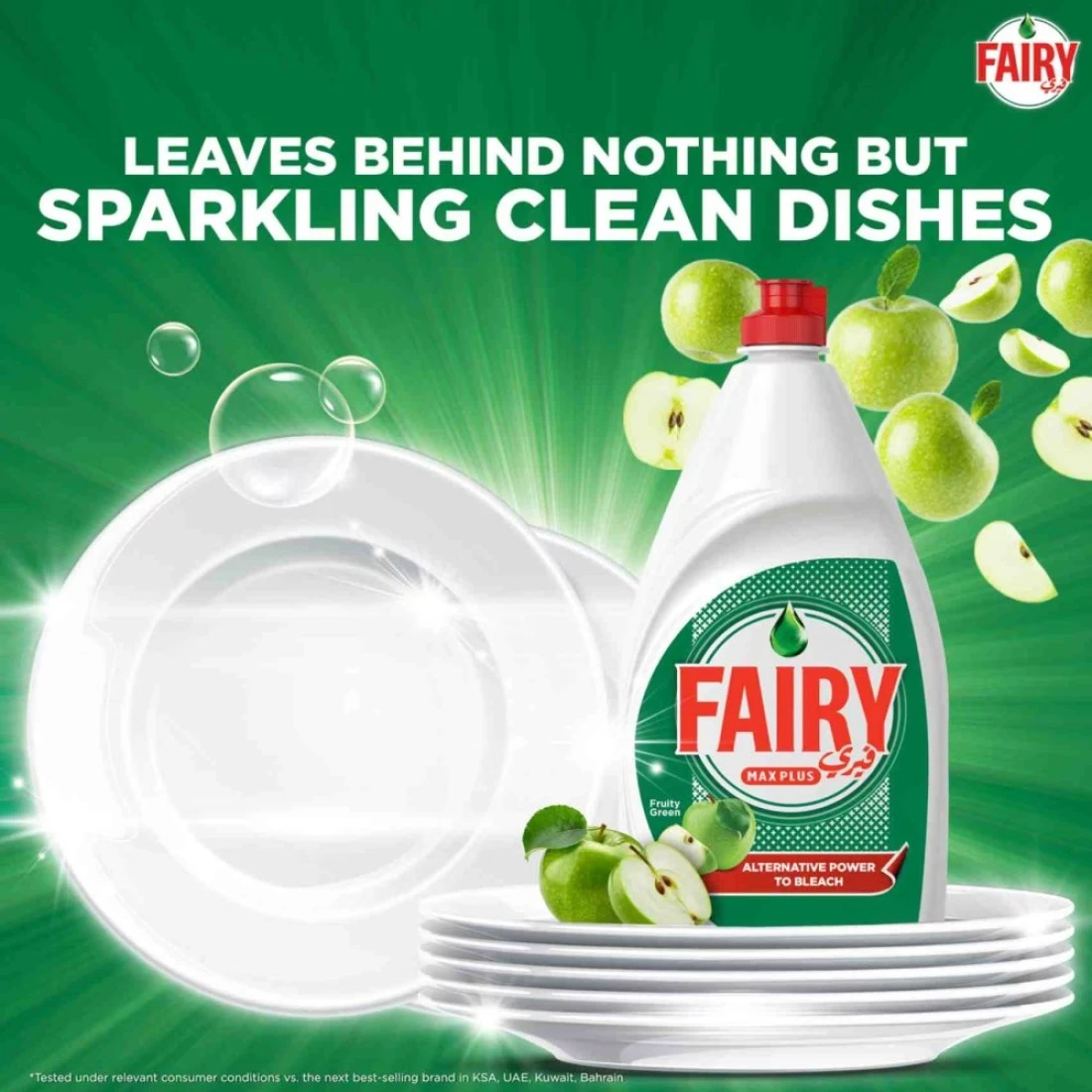 Fairy Max Plus Fruity Green Dishwashing Liquid Soap With Alternative Power To Bleach 1.25L