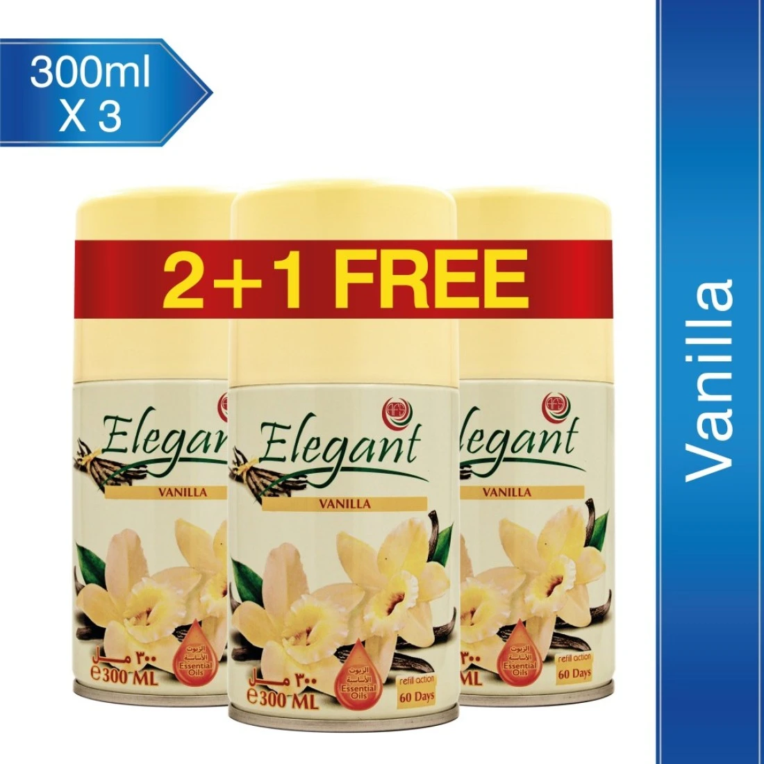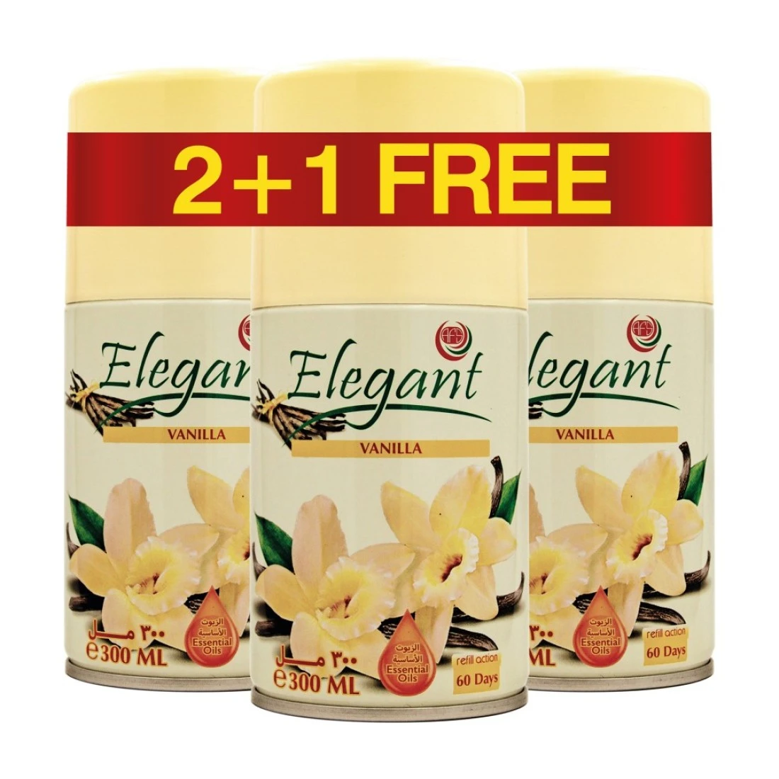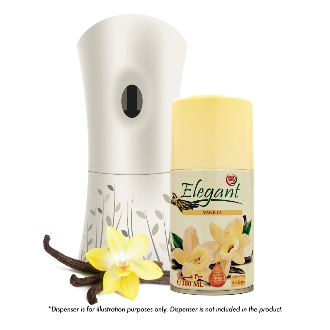 Elegant Automatic Spray REFILL – Vanilla – 300ML – Pack of 3, Triple Pack (300ML x 3 Pcs) – Air Freshener REFILL for Home And Bathroom, Made With ESSENTIAL OILS