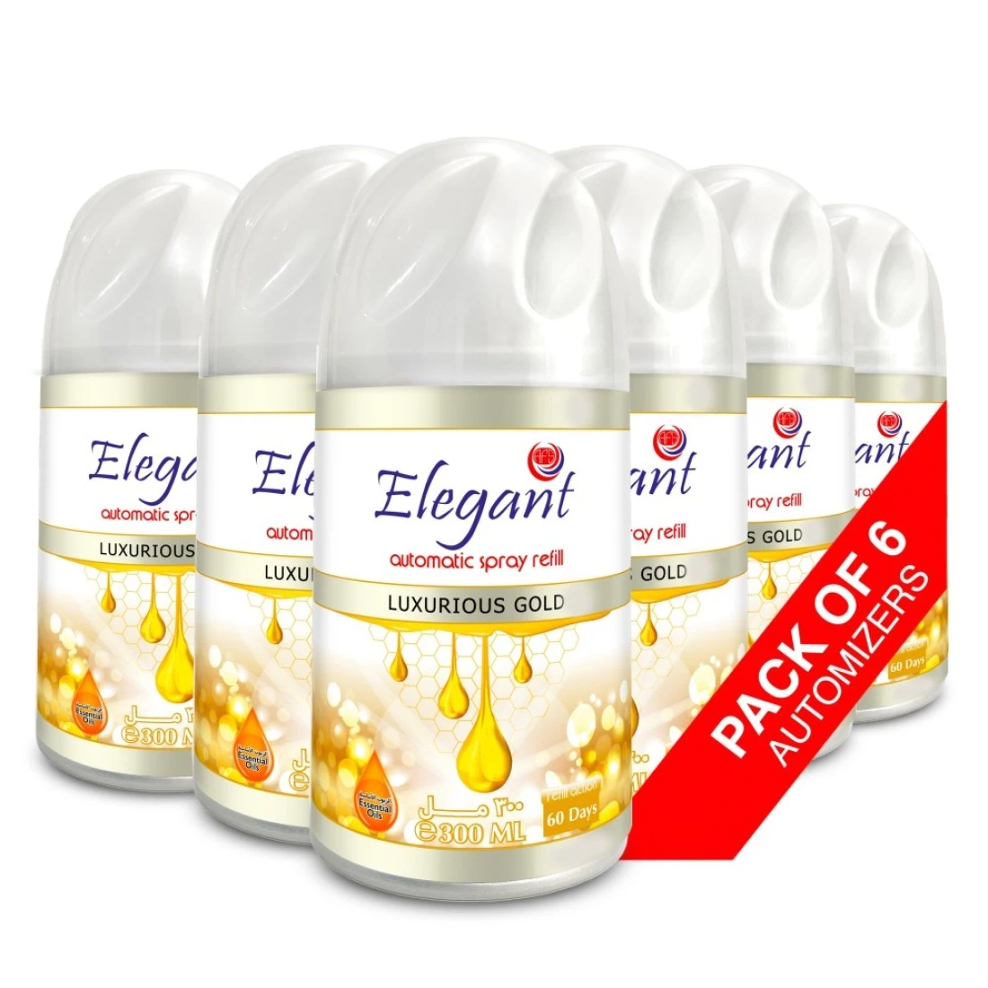 Elegant Automatic Spray REFILL – Luxurious Gold – 300ML – Pack of 6, 6-Pack (300ML x 6 Pcs) – Air Freshener REFILL for Home And Bathroom, Made With ESSENTIAL OILS