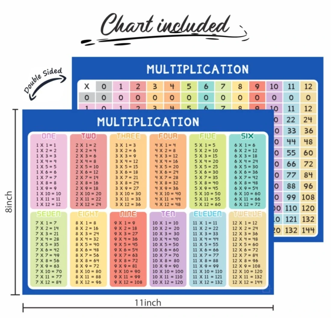 SCRIBBLEDO Dry Erase Multiplication Chart Whiteboard 9 x 12 Multiplication Table Double Sided Times Table Math Manipulatives White Board for Kids Students Classroom and Home Mini Lapboard Game