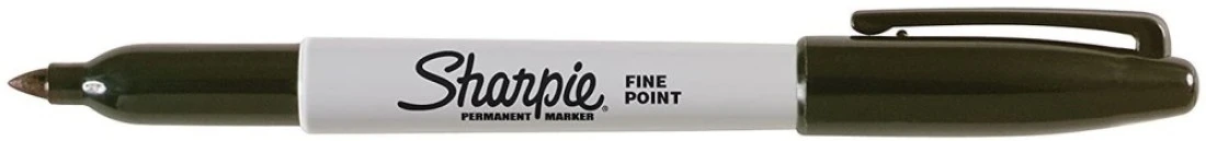 Proudly permanent black ink marks on paper, plastic, metal, and most other surfaces
