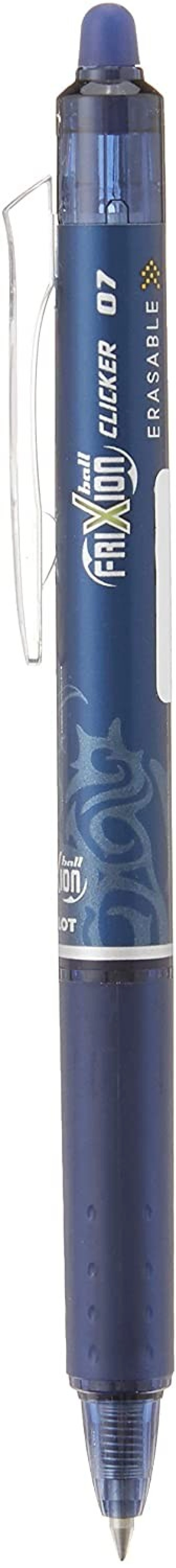 PILOT PEN-FriXion Clicker Fine Point Pens. These pens are comfortable to use and write smoothly. Erase and rewrite repeatedly without damaging documents no wear or tear. Eraser is at the top of the pen and the tip is retractable b pressing clip down. It is refillable. Pen is fine and is 0.7mm. This package contains twelve clicker pens. Available in a variety of colors each sold separately. Imported.