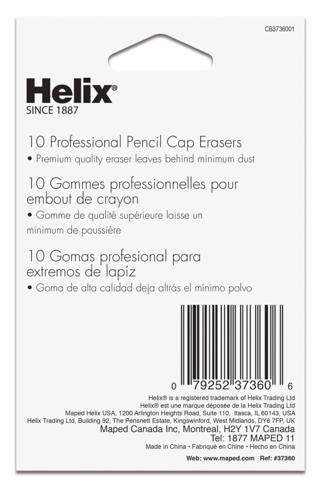 Helix Professional Pencil Cap Erasers 10ct Efficient Correction Durable Clean Ideal for Students and Professionals Latex free